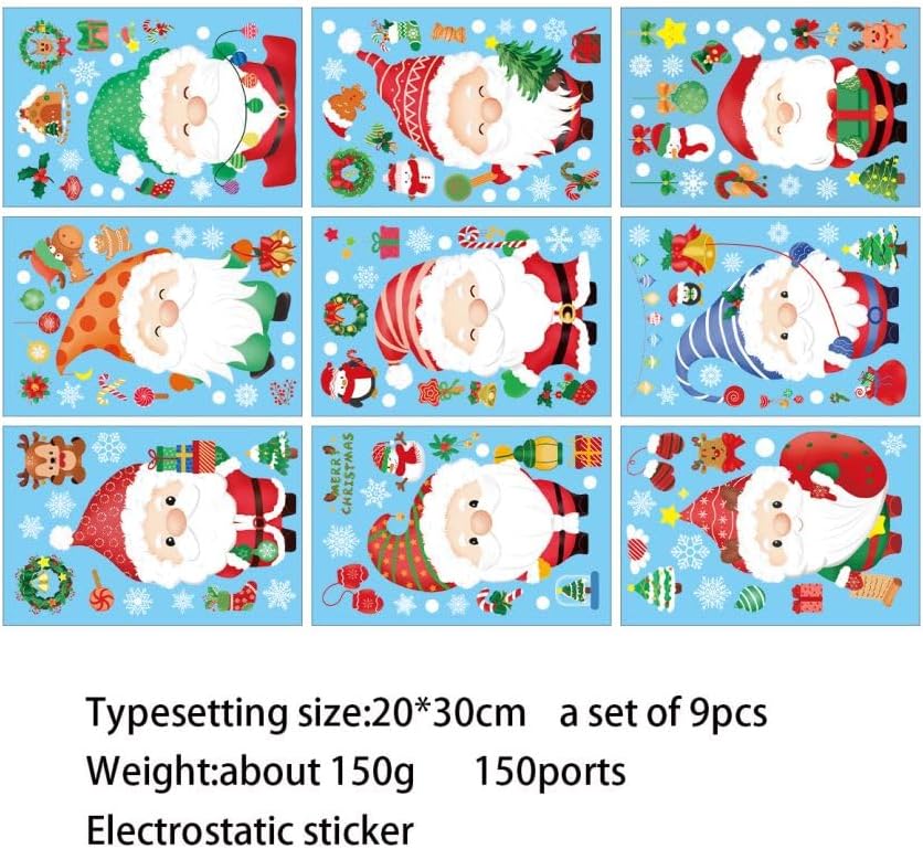 Products Included : 9 sheets Christmas window clings, totally 150pcs. Each sheet measures 7.8in×11.8in(20×30CM).