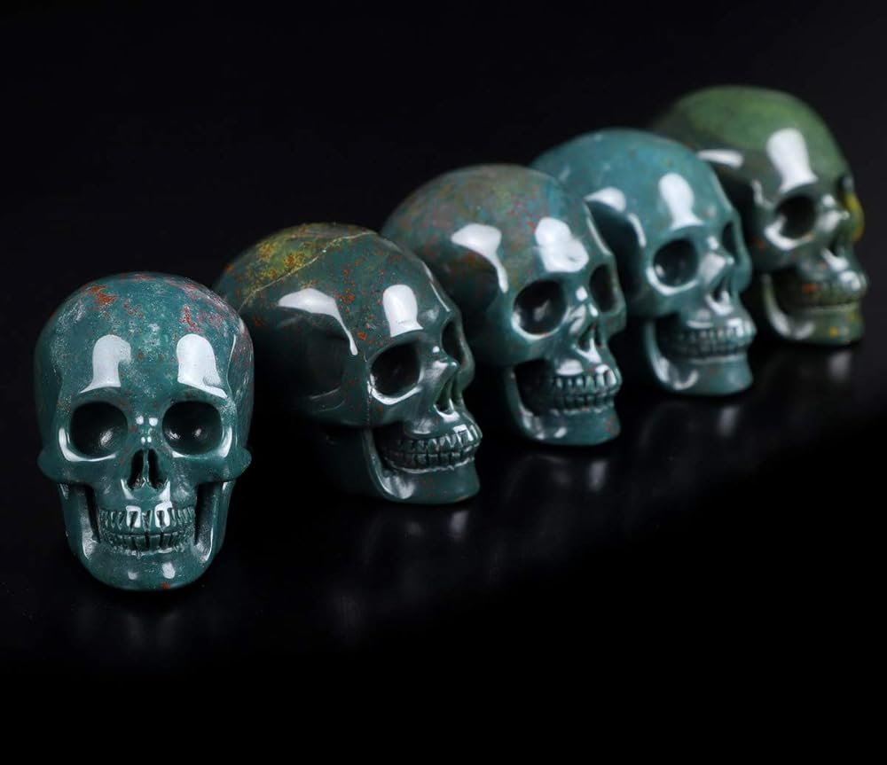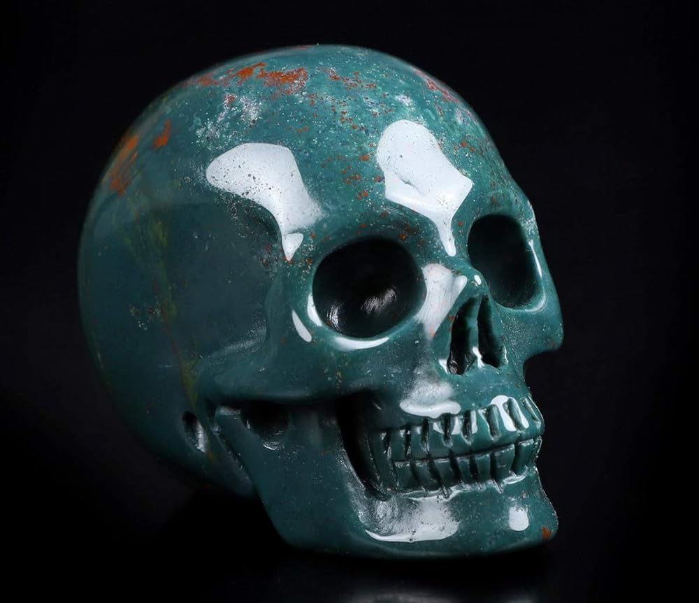 فنون جميلة منحوتة بشكل جميل: أحجار كريمة طبيعية منحوتة بتصميم جمجمة الكريستال الواقعي الحصري (حجر الدم الهندي).