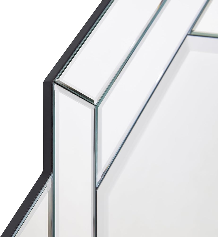 • PRODUCT TECHNIQUES - At its heart lies a 1-inch beveled mirror, an exquisite reflection that captures not only your image but the depth of your affection. The mirror frame, adorned in a matte black finish, adds an air of mystery and sophistication. Yet, what truly sets this mirror apart is its frame, a breathtaking work of art composed of beveled mirrors that intertwine like two laces in a lover's embrace.