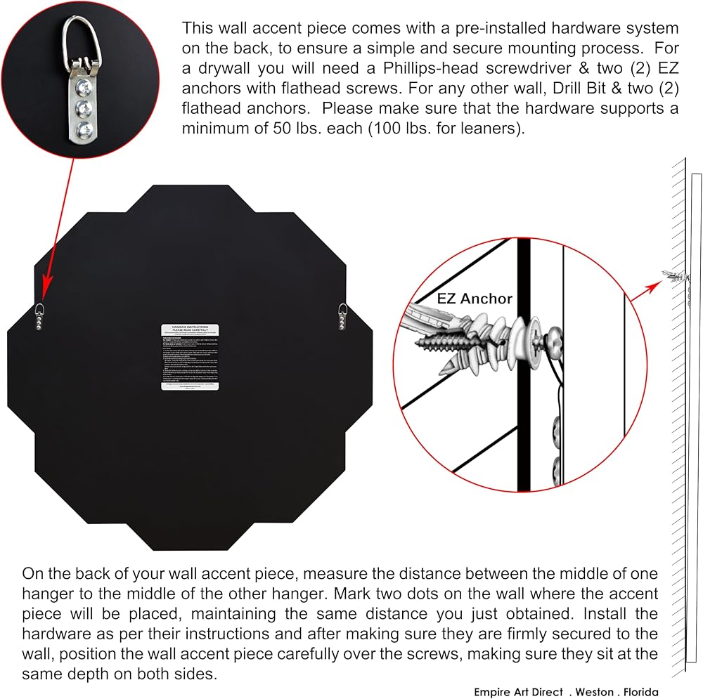 • PROTECTION & INSTALLATION - Such a wall mirror is packaged in strong carton with styrofoam protective corner and shrink wrapping. 2 pre-installed D-Rings are attached to the back of the mirror for a quick and easy vertical or horizontal installation.