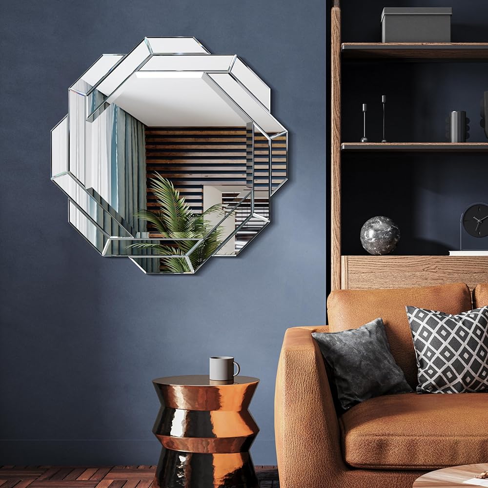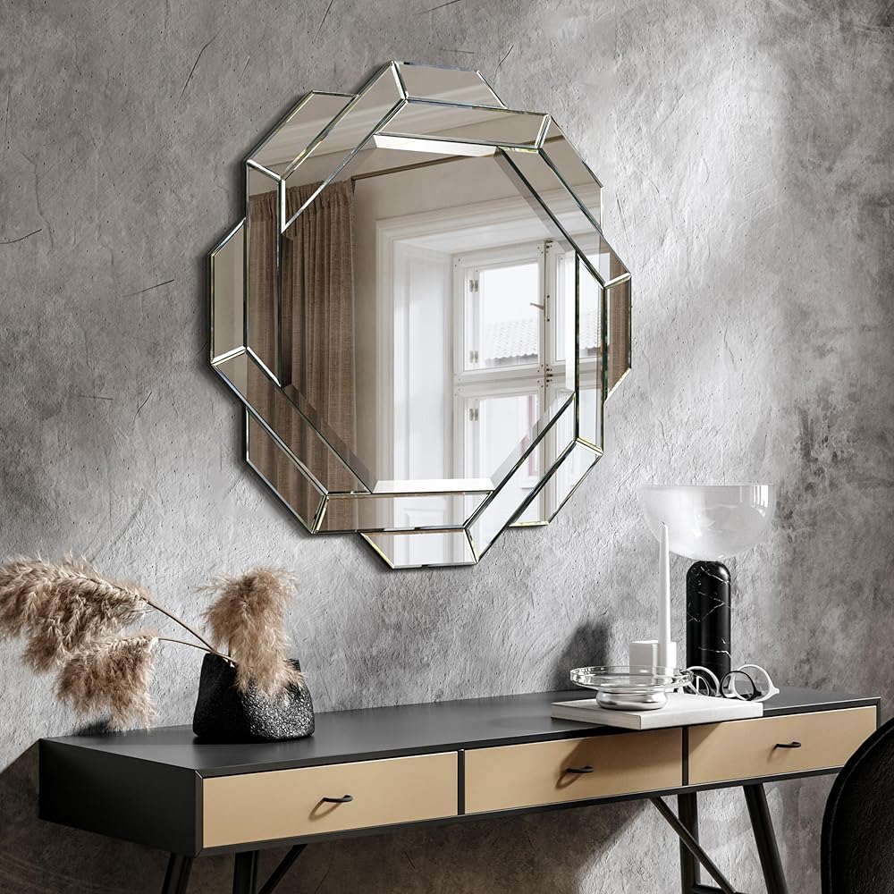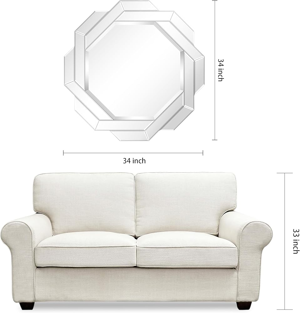 • BEVELED ROUND WALL MIRROR- Behold a mirror, not just a reflection but a love story etched in every curve and line. This round masterpiece, measuring 34 inches by 34 inches, is a testament to timeless elegance, a window to a world where romance and art intertwine. At its heart lies a 1-inch beveled mirror, an exquisite reflection that captures not only your image but the depth of your affection.