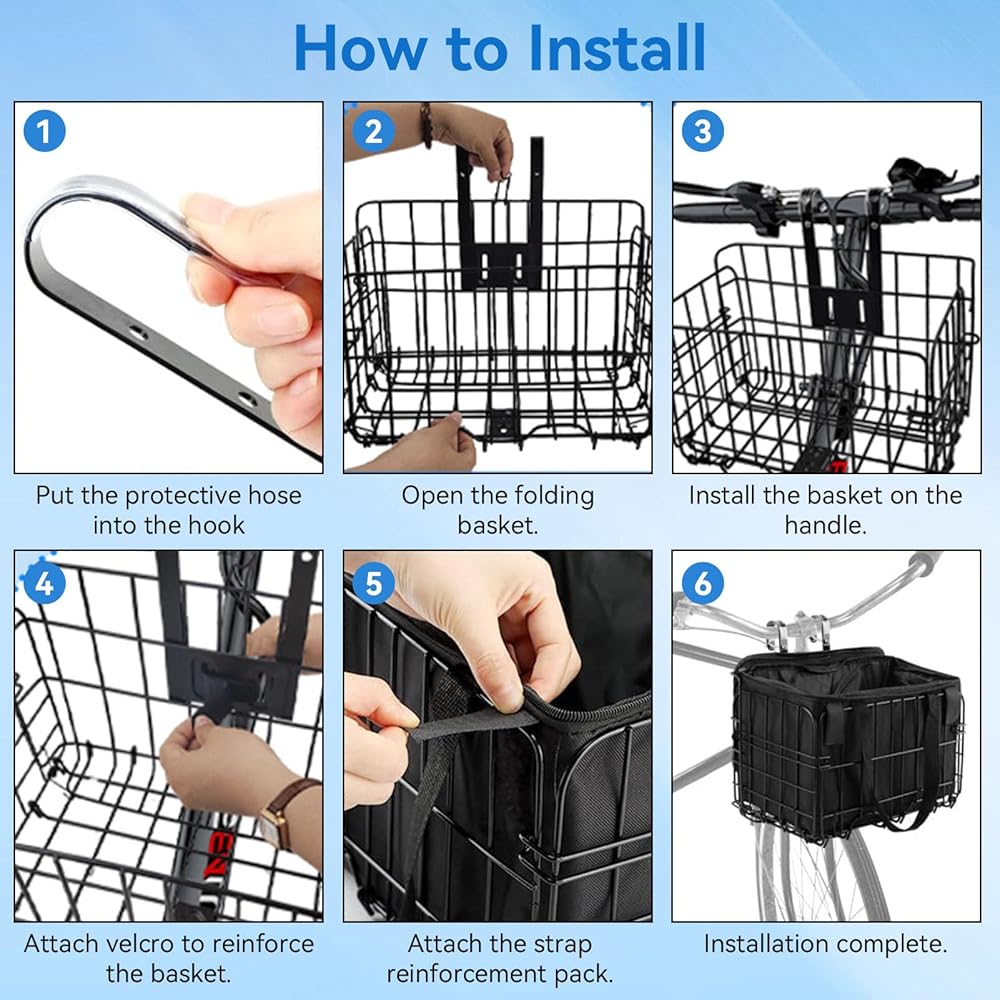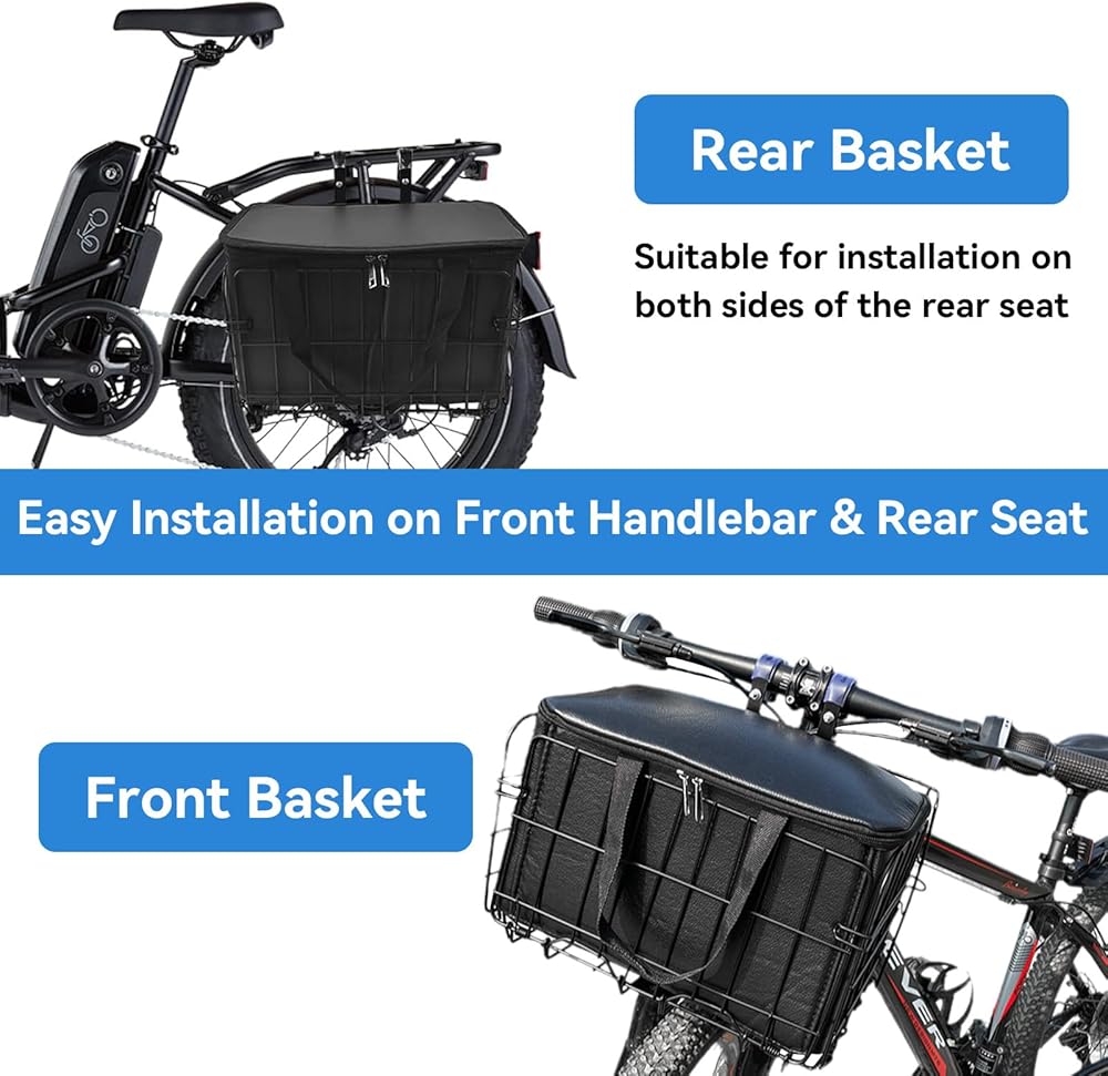 🚲سلة دراجة متعددة الاستخدامات: تخدم سلال الدراجة أغراضًا متعددة، مما يجعلها مناسبة للحيوانات الأليفة والكتب والفواكه والعمل والمدرسة والتسوق وركوب الدراجات والبالغين والمراهقين والطلاب على حد سواء. يمكن استخدامها كسلة مقود أمامية وسلة خلفية. ملحوظة: عند تركيبها كسلة خلفية، يلزم وجود رف خلفي للدراجة.