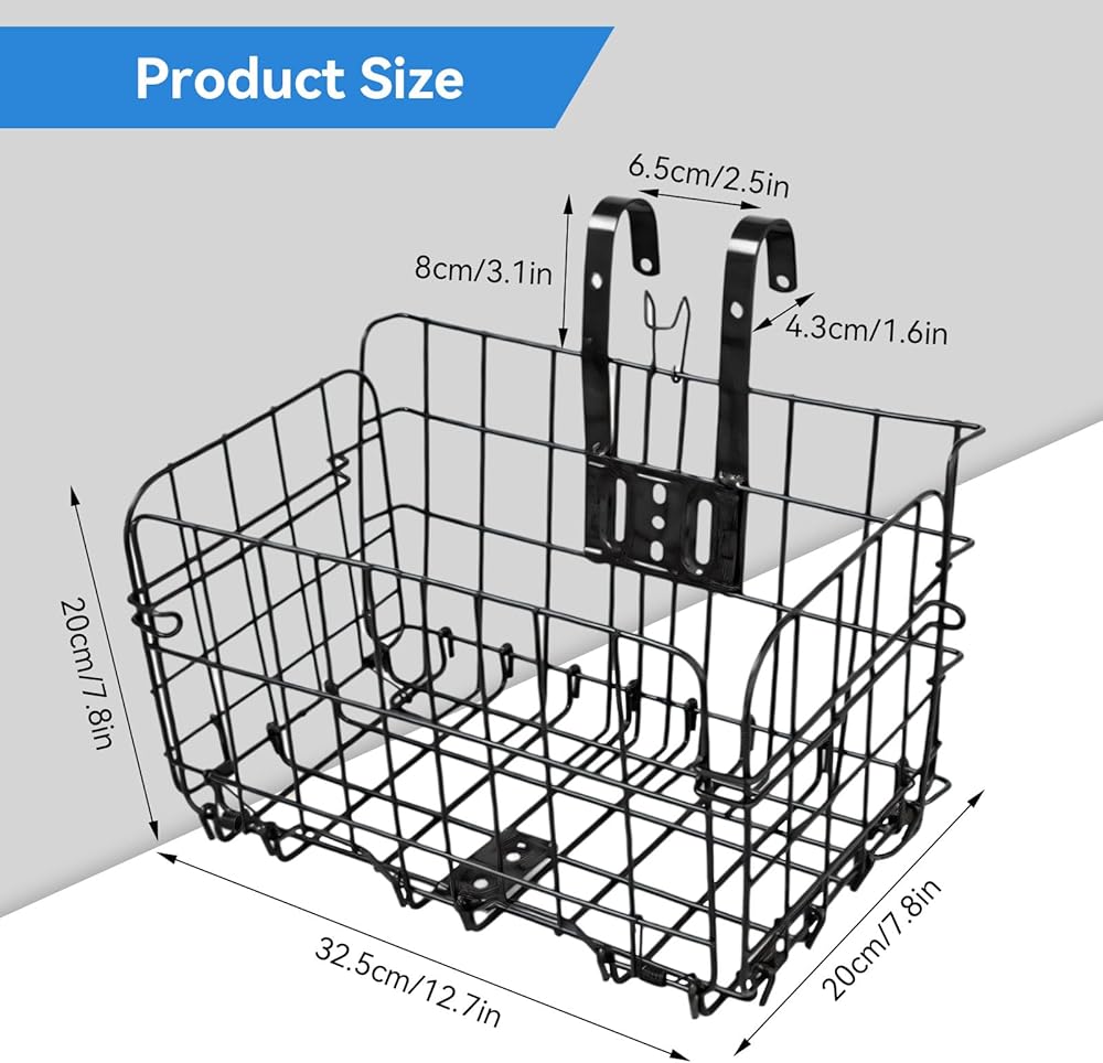 🚲تصميم قابل للطي: تتميز سلة الدراجة الأمامية بأبعاد 12.8 × 7.8 × 7.8 بوصة ويمكن طيها بحجم أصغر لسهولة الحمل والتخزين. ملاحظة: تصل قابلة للطي، ويسهلها زنبرك قوي. يرجى فتحها بعناية لتجنب أي شيء خطر إصابة الأصابع