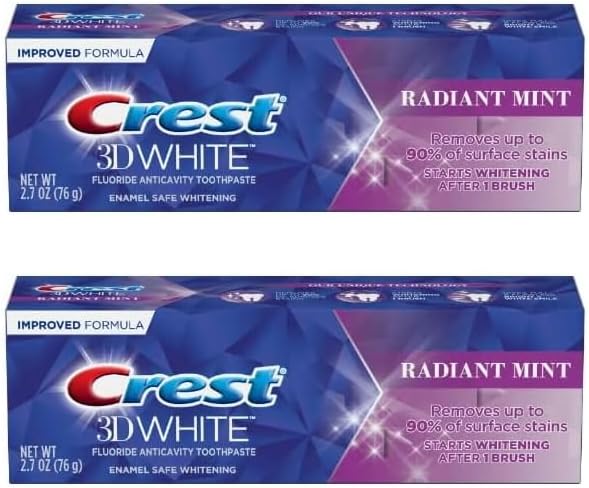 Brighten your smile with Crest 3D White Radiant Mint Whitening Toothpaste. The New and Improved Formula removes up to 90% of surface stains, protects against future stains & starts whitening your teeth after 1 brush. 3D White fluoride toothpaste also strengthens your tooth enamel and helps protect against cavities. Leaves your smile bright and minty fresh. NDC:37000-876.