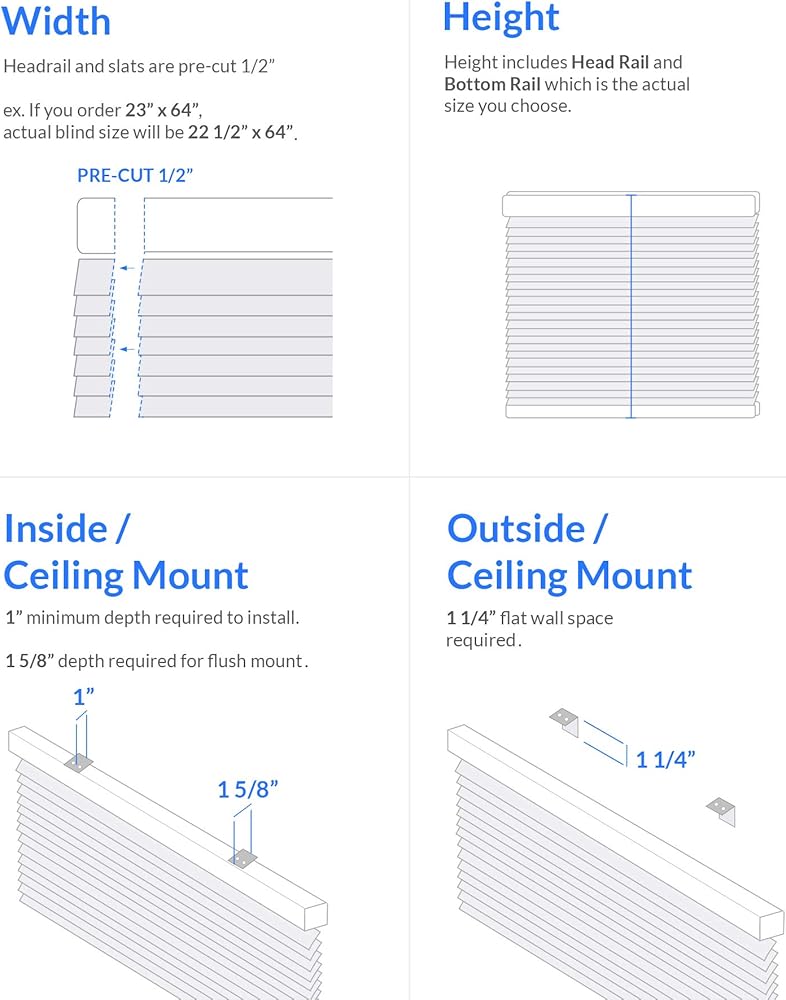 • الستائر اللاسلكية - تم تصميم ستائرنا الصغيرة عالية الجودة مع وضع احتياجات العميل في الاعتبار. العرض لديه خصم 1/2 بوصة. الأجهزة والتعليمات المقدمة.