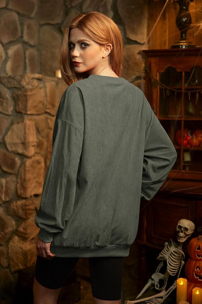سويت شيرت الهالوين كبير الحجم - مصنوع من قماش ناعم عالي الجودة، ويضمن لك هذا السويت شيرت ذو الرقبة الدائرية الراحة طوال اليوم، مما يجعله مثاليًا للملابس غير الرسمية أو للاسترخاء في المنزل. هذا القميص الكبير الحجم شامل ومناسب لجميع أنواع الجسم، وارتداء سترة فضفاضة بغطاء للرأس يسمح لمرتديها بالحفاظ على إحساس بالأناقة بينما لا يزال في مزاج الهالوين.