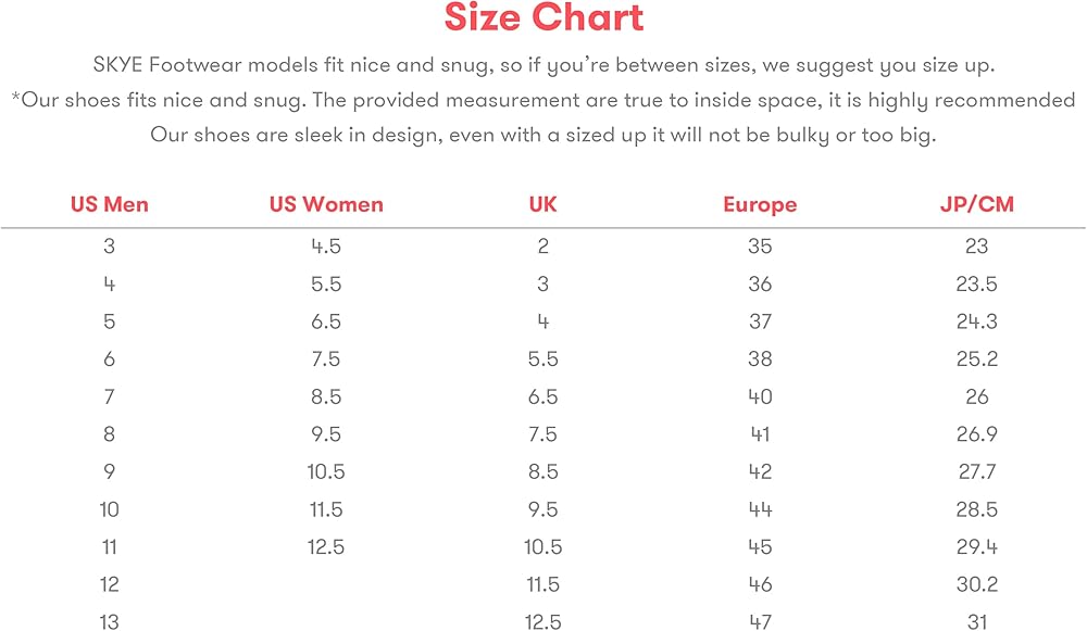 UNCONDITIONAL COMFORT - We believe in unconditional comfort: good-looking performance footwear made sustainably, designed for the future, and engineered for whole-body ergonomics. You can confidently wear SKYE Footwear knowing you look good, your feet and body feel cared for, knowing you're supporting a company with morals, and knowing the product you're buying isn't harmful to the planet.