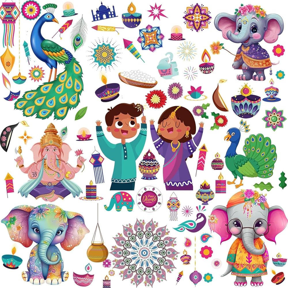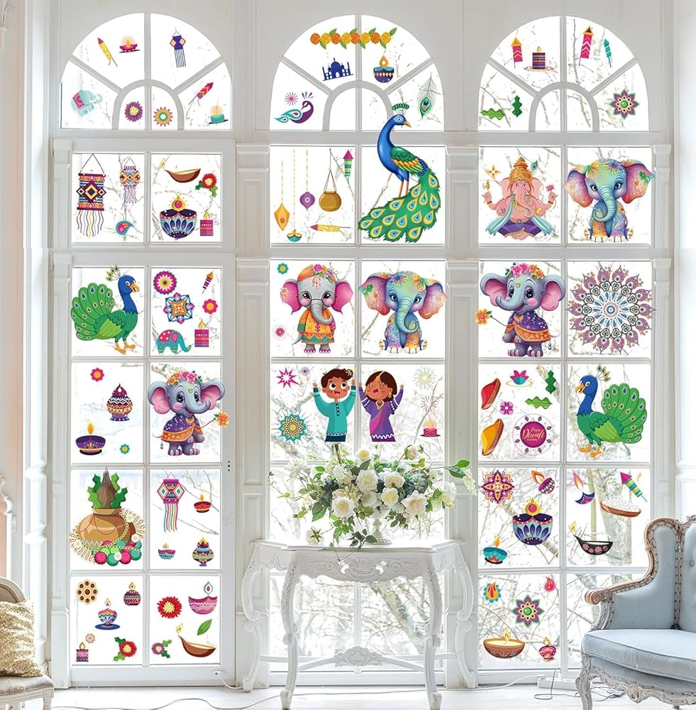 • The beautiful and cute window cling decals are the perfect decoration for smooth surfaces, including glass, mirrors, windows, glass storm doors, tile, refrigerators, and even cars. Best choice to bring atmosphere to Indian Diwali festive, home parties and other theme parties.