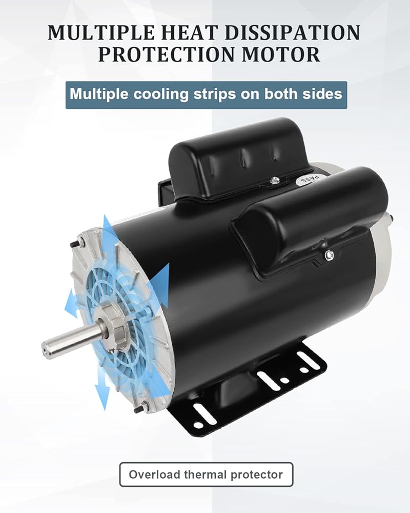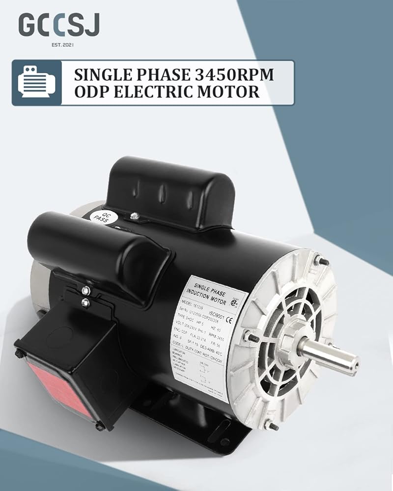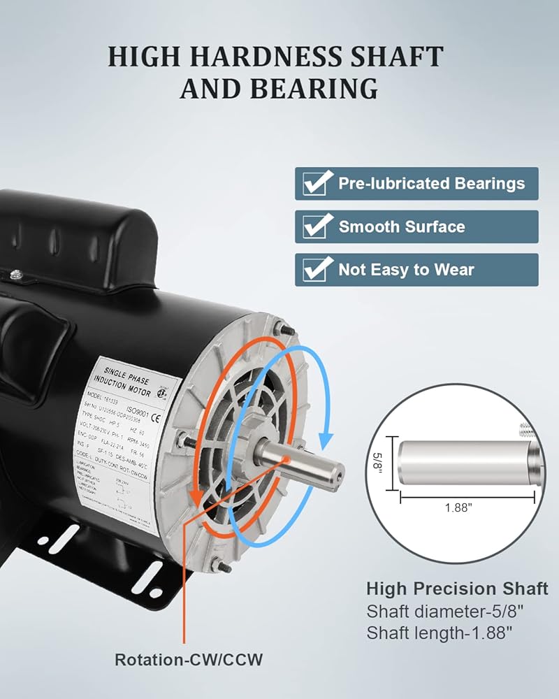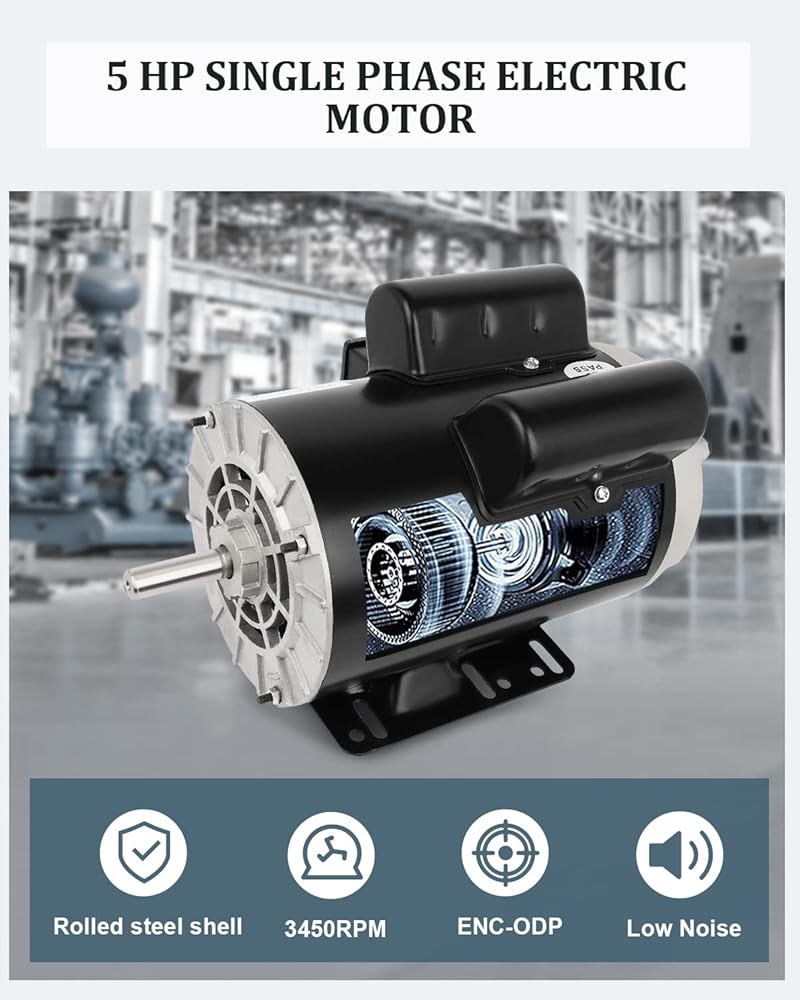 محرك كهربائي 5 حصان، محرك ضاغط الهواء، 3450 دورة في الدقيقة، محرك للأغراض العامة، محرك أحادي الطور 208 فولت - 230 فولت 5/8 بوصة، قطر العمود، غلاف فولاذي مدرفل 60 هرتز ODP CW/CCW