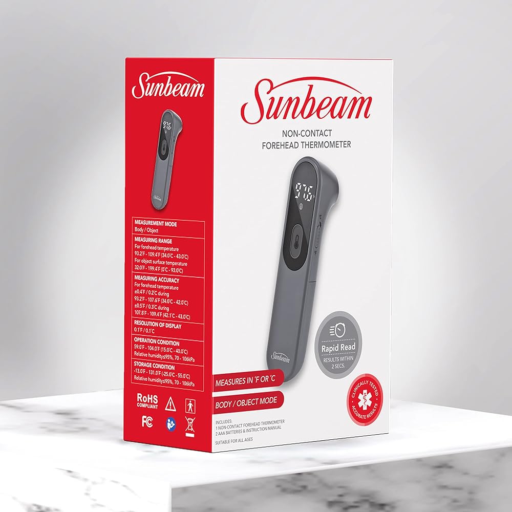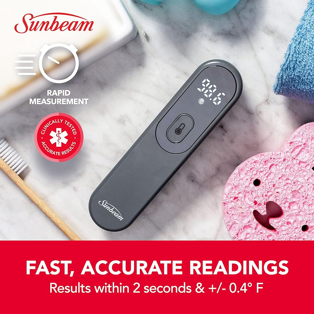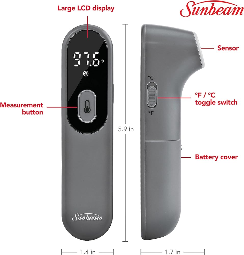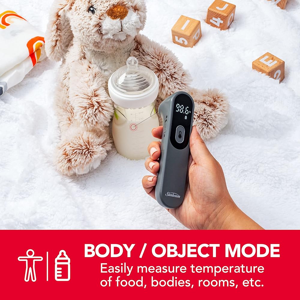جهاز قياس الحرارة الرقمي بالأشعة تحت الحمراء للجسم والأشياء بدون لمس من صن بيم للبالغين والأطفال، قراءة دقيقة فورية، مؤشر الحمى