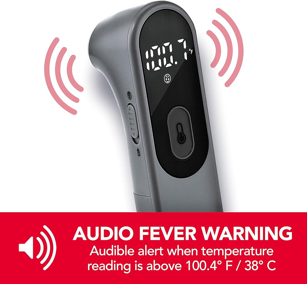 - يصدر تنبيه صوتي للحمى تحذيرًا عندما تتجاوز قراءات درجة الحرارة عتبة 100.4 درجة فهرنهايت. كريستال