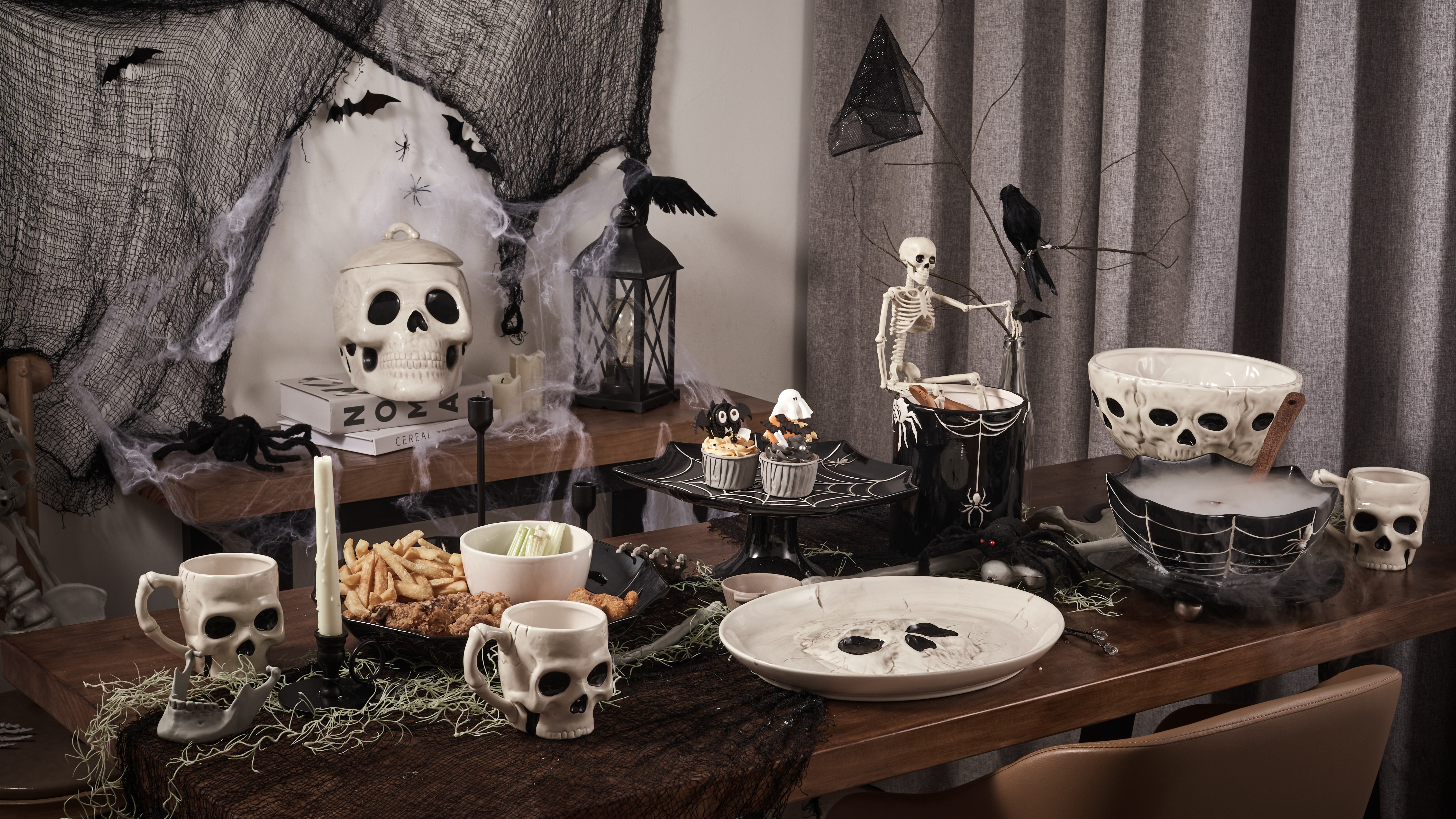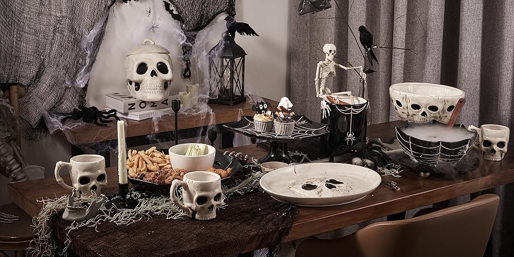 | مجموعة مخيفة كاملة | إذا كنت تتطلع إلى تزيين منزلك بمناسبة عيد الهالوين، فتأكد من مراجعة متجرنا للحصول على المجموعة الكاملة! لدينا طبق، وجرة كوكي، وأكواب وغيرها الكثير!