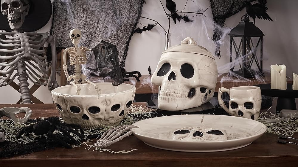 | تصميم الهيكل العظمي للهالوين | هل تبحث عن شيء مخيف؟ تم تصميم وعاء تقديم الحلوى الكبير هذا بواسطة Bico ويأتي بلمسة نهائية لامعة وناعمة، ويمكن أن يكون القطعة المركزية أو الديكور المثالي لتجمع الهالوين الخاص بك، أو توزيع الحلوى الخاصة بك!