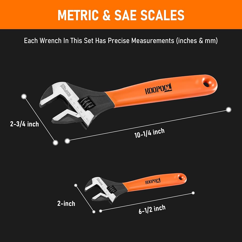 طقم مفاتيح ربط قابل للتعديل مكون من قطعتين، مفتاح ربط هلالي 6 بوصة و10 بوصة، فك عريض، لمسة نهائية من أكسيد أسود، موازين مترية وSAE - فولاذ Cr-V للمنزل، المرآب، ورشة العمل