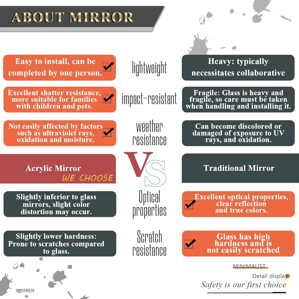 Lightweight mirror made of special material, unbreakable and safe
