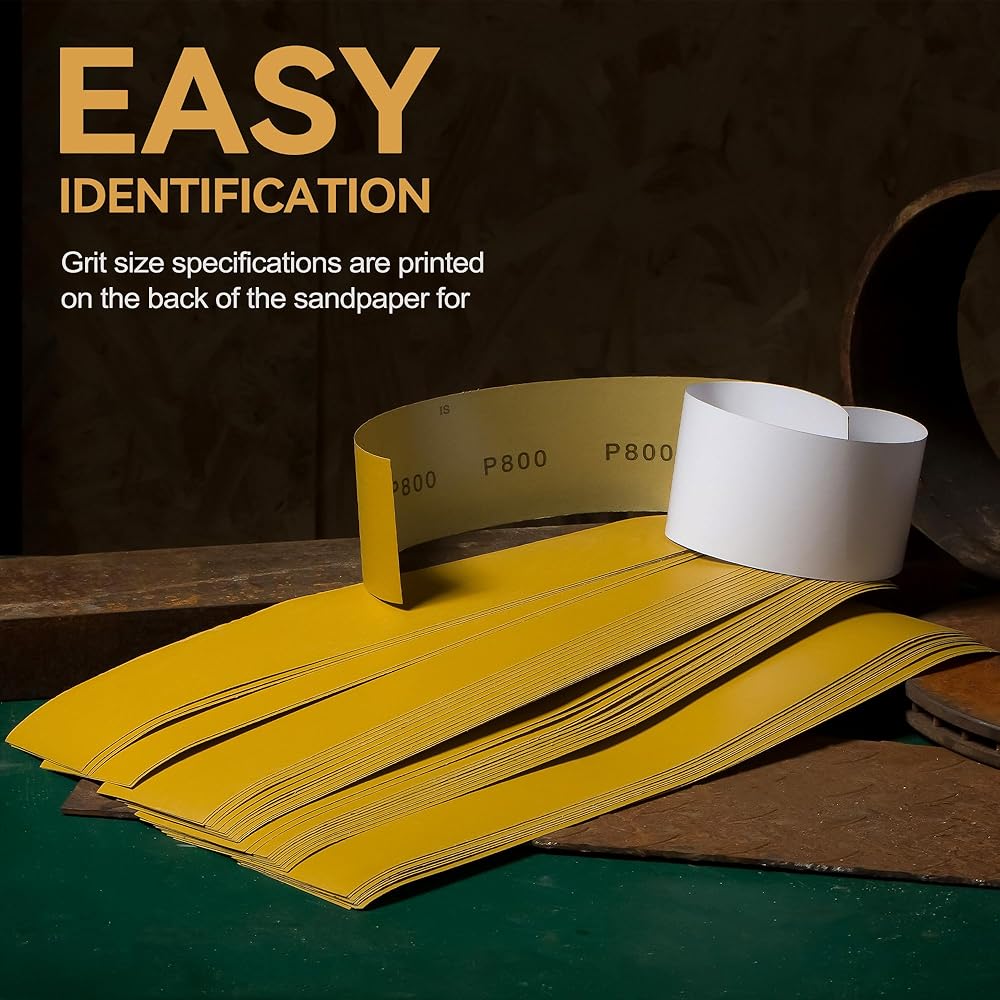 Convenient size and easy to identify: all sandpapers are 2-3/4" x 16-1/2" inch, also can be cut into any size you need. Soft-backed sandpaper ensures good hand grip and can be used to polish objects smoothly with only moderate effort, with high resistance to slipping or loose during use. Grit specifications are printed on the back of the sanding papers for easy identification