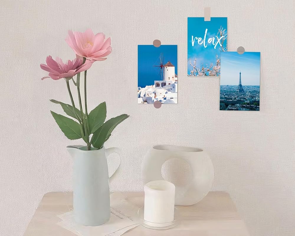 This high quality photo collage kit is perfect for decorating your home or office. With 50 different 4x6 inch prints in various styles and designs, you can create a unique and personalized collage that suits your taste. The photo prints about landscapes and imagery travel photos ,including 120 dots double-sided tape .You can mix and match the prints to create your own custom collage, or use the pre-designed layouts as inspiration. Whether you're looking to add a touch of personality to your living room, bedroom, or office, this photo collage kit is a great way to do it.Each of blue wall art is packaged with care and an artistic eye, high-quality packaging for Gift this aesthetic prints to your family, friends and loved ones to show your flair and forethought for gift giving.