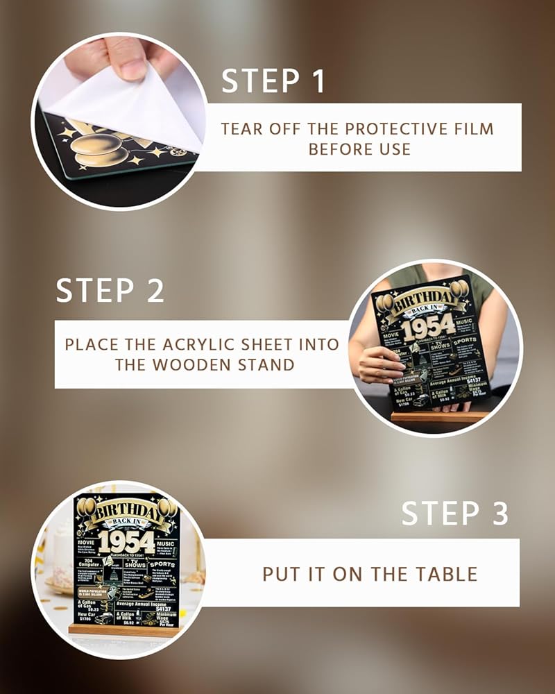 زينة عيد الميلاد الخمسين 【سوف تحصل على ملصق عيد ميلاد أكريليك مطبوع مزدوج من الذهب الأسود 'Back in 1974' مع حامل خشبي مطابق. أكريليك: الطول × العرض = 20 × 25 سم
