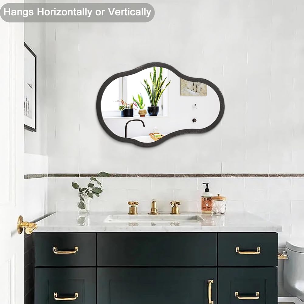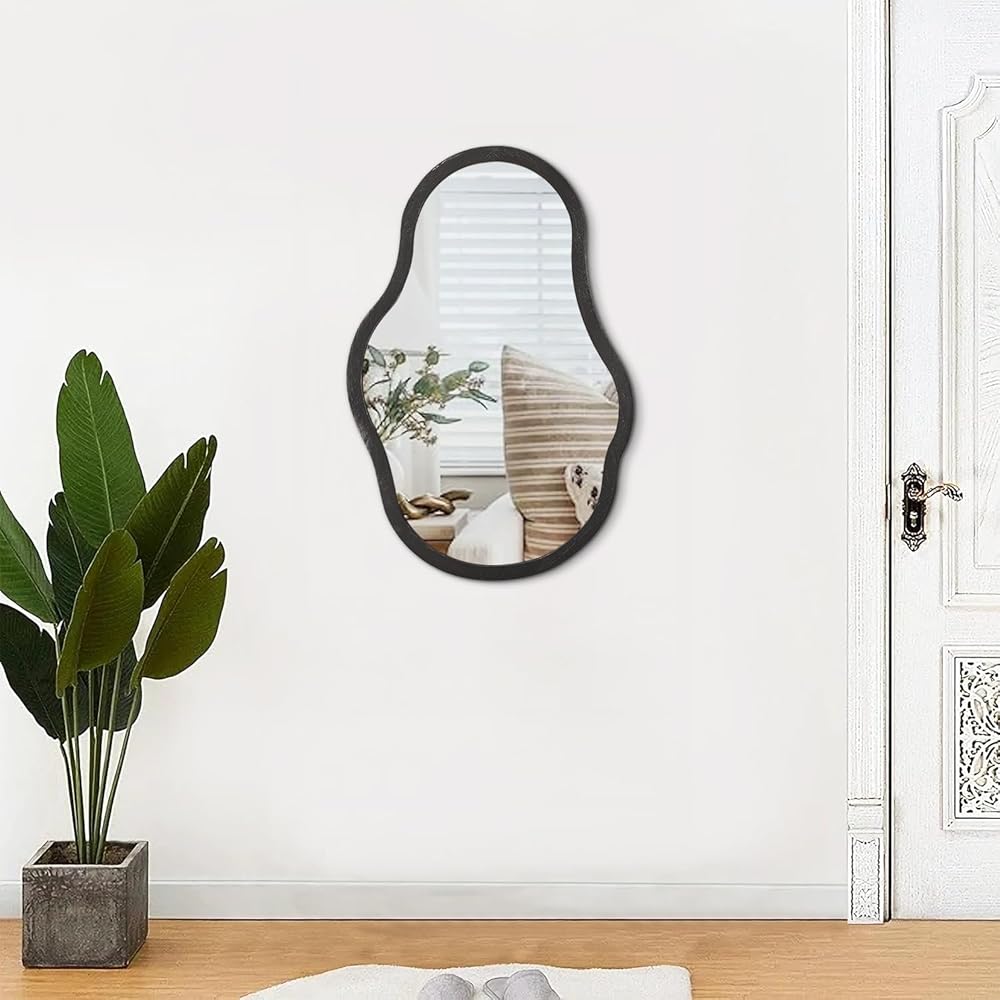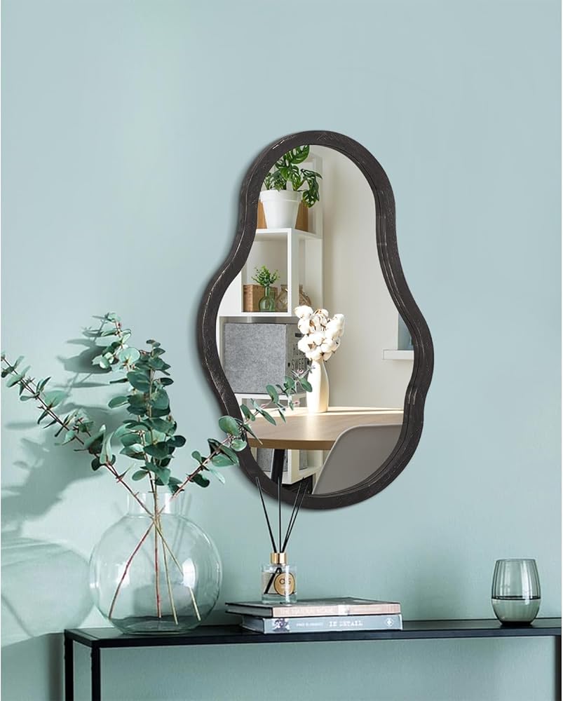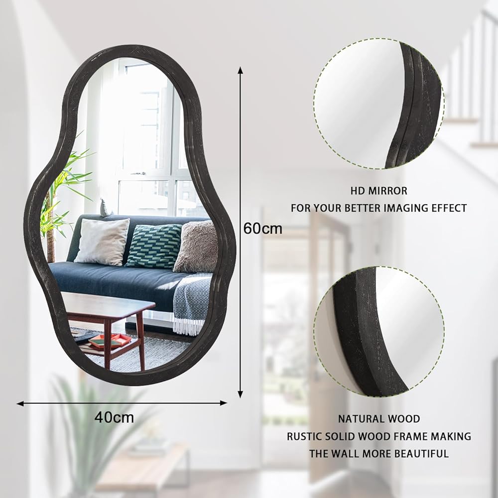 مرآة حائط غير منتظمة بإطار خشبي غير متماثل، مرآة معلقة فريدة من نوعها، مرآة فنية حديثة، ديكور الحمام، غرفة النوم، غرفة المعيشة، المدخل، كبير 24 بوصة × 16 بوصة
