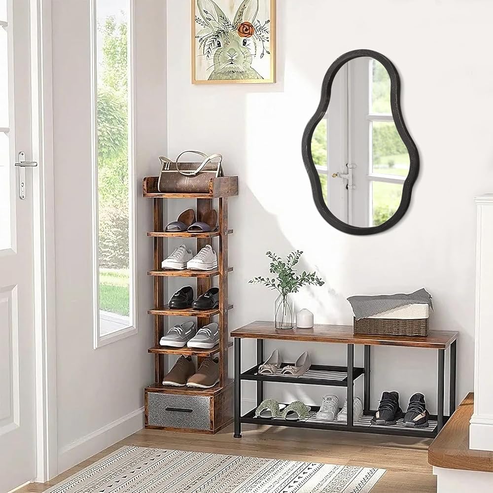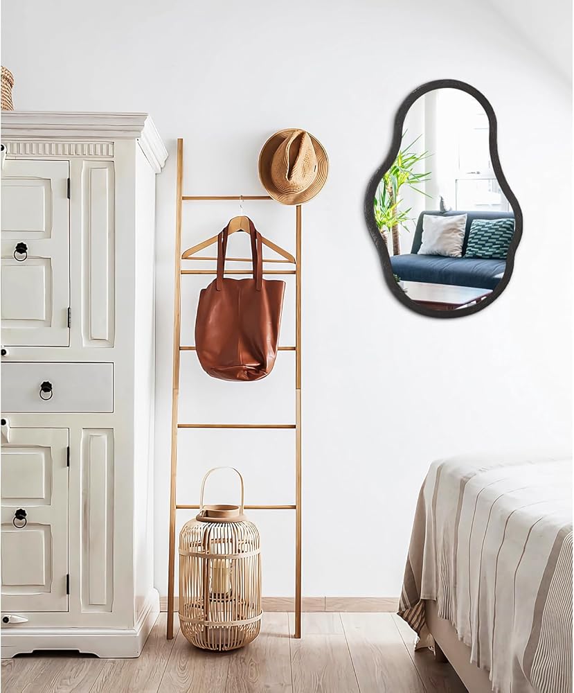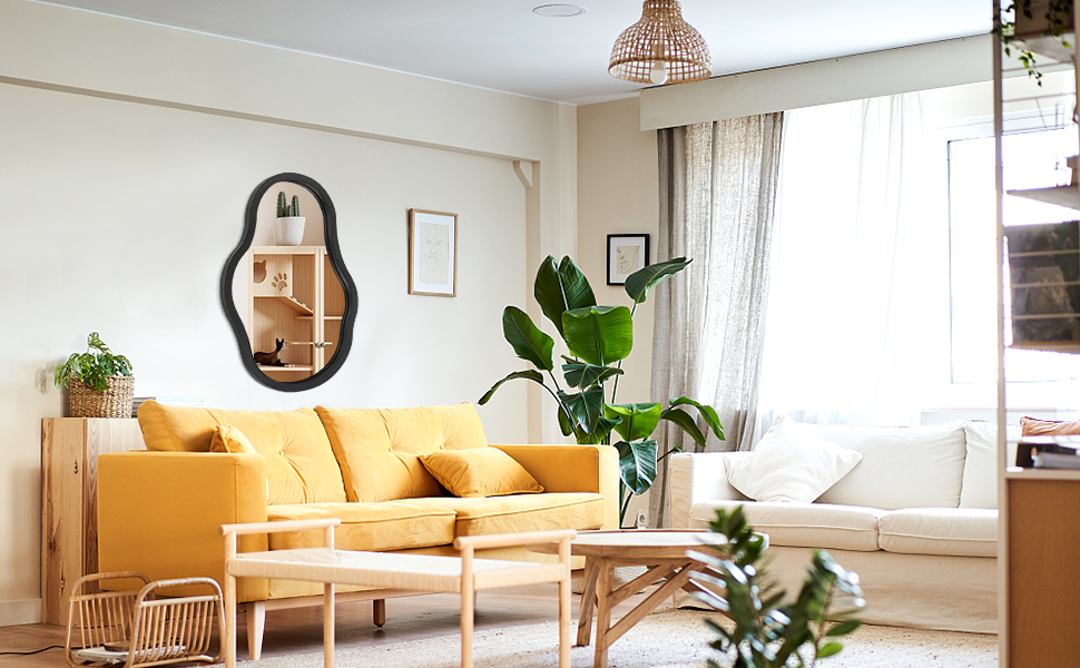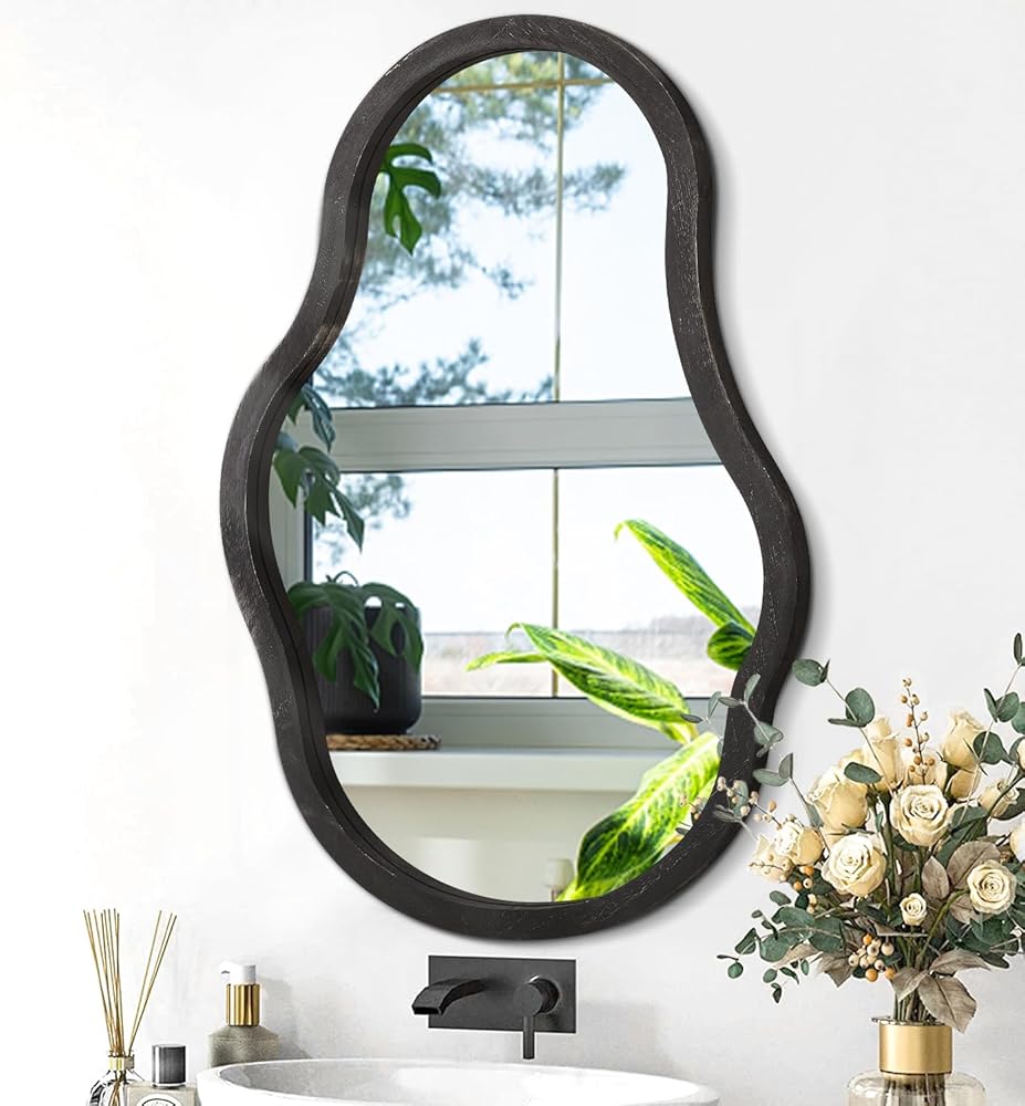 مرآة حائط غير منتظمة بإطار خشبي غير متماثل، مرآة معلقة فريدة من نوعها، مرآة فنية حديثة، ديكور الحمام، غرفة النوم، غرفة المعيشة، المدخل، كبير 24 بوصة × 16 بوصة