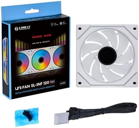 حزمة واحدة من Lian Li SL Infinity 120 Reverse Blade White وLian Li UNI Fan SL-Infinity 120 RGB White حزمة واحدة