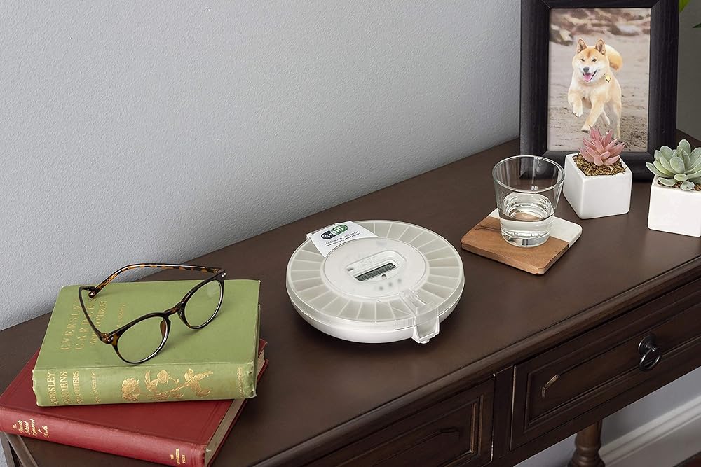 المميزات: نافذة توزيع ذات قفل تلقائي بالإضافة إلى غطاء مغلق بمفتاح، ما يصل إلى 24 منبهًا يوميًا مع إشعار صوتي ومرئي، مدة التنبيه التي يمكن للمستخدم تحديدها من 5 دقائق إلى 5 ساعات، والتي يتم إسكاتها عند التوزيع، ومؤشر الجرعات المتبقية، وسجل التوزيع، مؤشر البطارية، وخيار الجرعة المبكرة في حالة الحاجة إلى الاستغناء عنها قبل مغادرة المنزل لفترة طويلة. يقوم هذا الموزع أيضًا بضبط التوقيت الصيفي تلقائيًا.