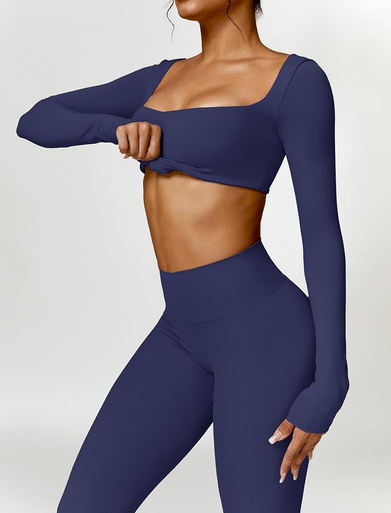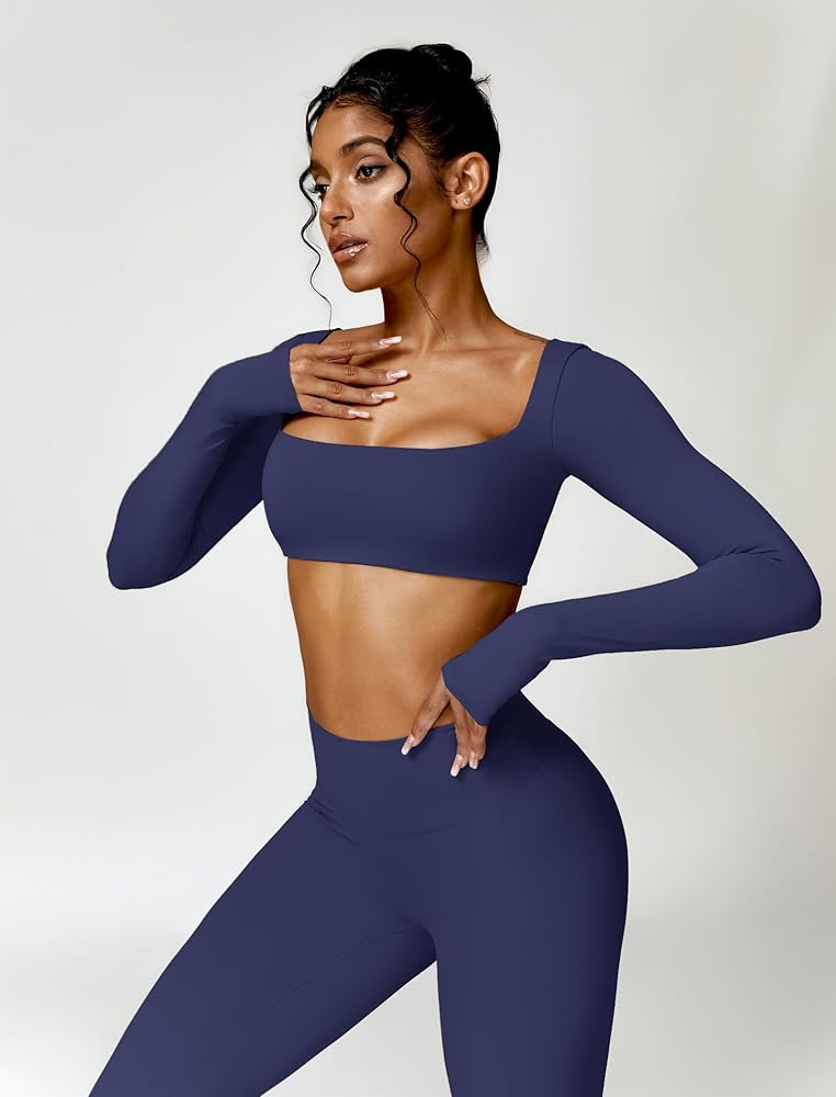 أطقم صالة الألعاب الرياضية للسيدات: حمالة الصدر الرياضية الضاغطة لليوجا وسروال عالي الخصر للتحكم في البطن للنساء، يضمن حركة كاملة ومرنة عندما تظل عصرية. حمالة صدر رياضية بأكمام طويلة ورقبة مربعة، يمكن أن توفر تغطية كاملة لذراعيك وتظهر الترقوة الساحرة في الخريف أو الشتاء. مقابض مرنة مضادة للانزلاق عند الحاشية، تحافظ على ثباتها في مكانها مع كل حركة أثناء التدريب، والتي يمكنها أيضًا دعم الثدي بشكل فعال.