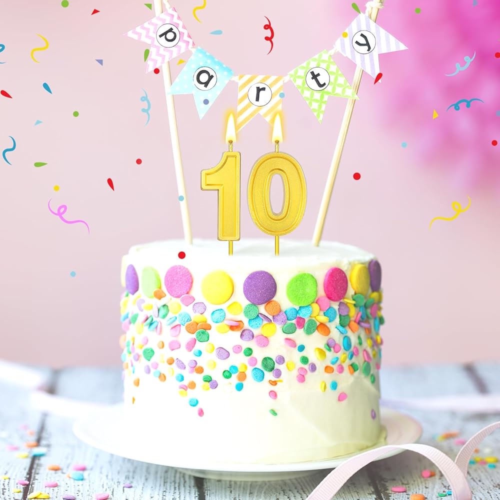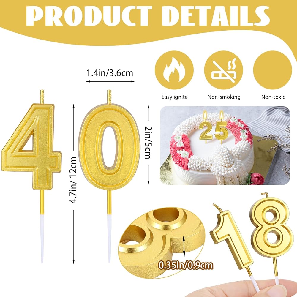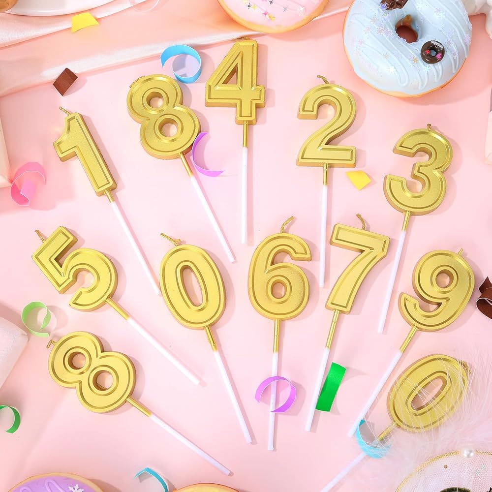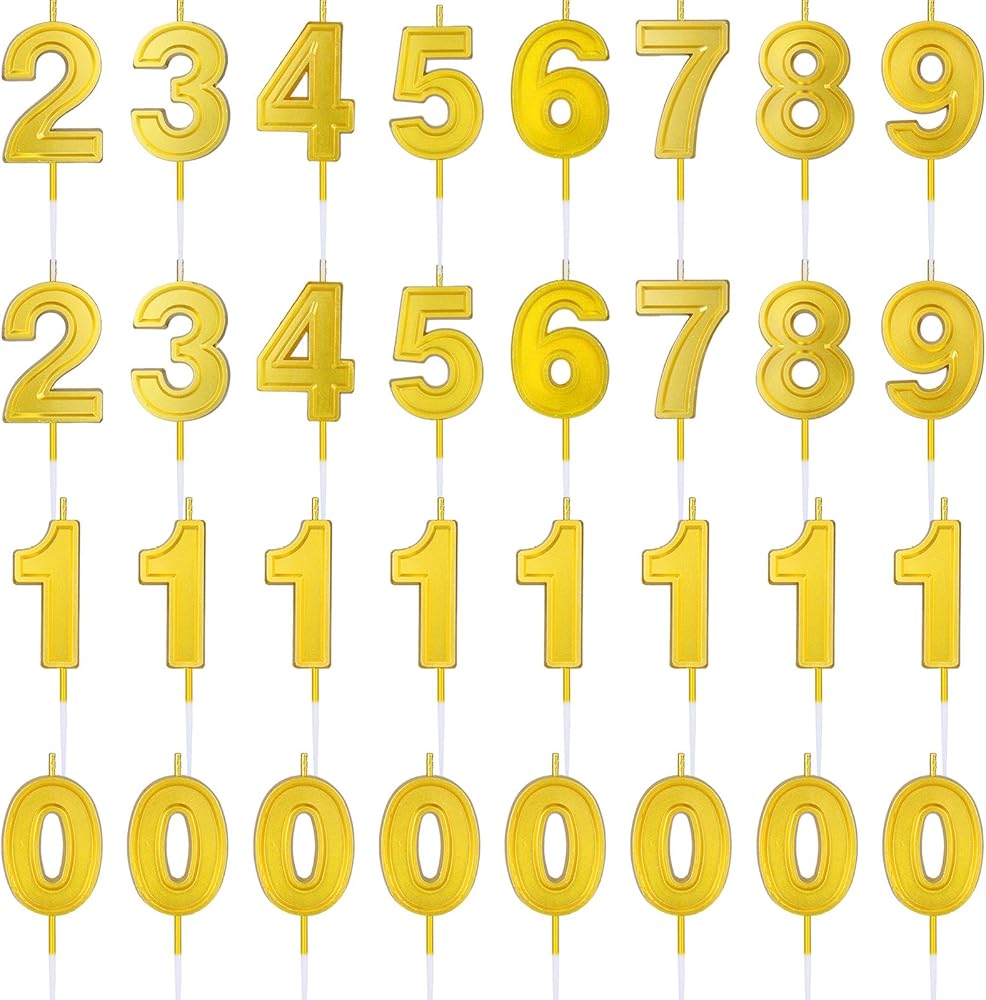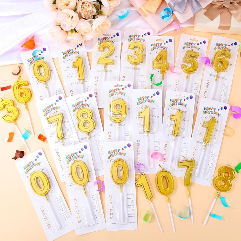 32 PCS Gold Number Birthday Candles Cake Candles Number 0-9 Cake Topper Decoration for Birthday Ten-Year Milestone Anniversary Wedding Party Celebration