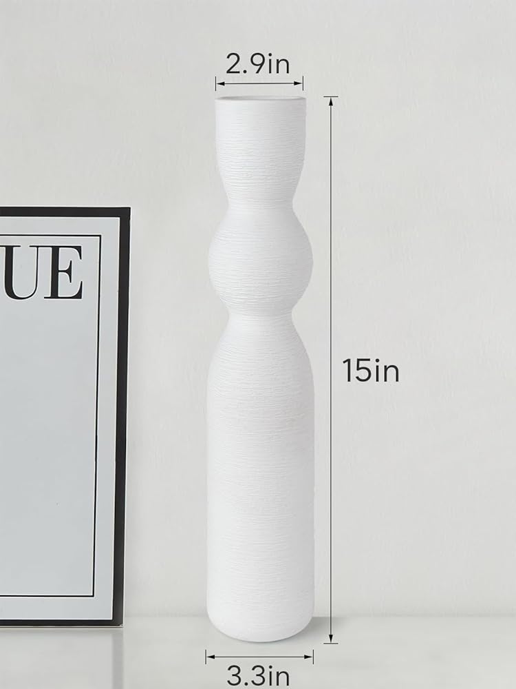 STURDY PACKAGING AND SIZE: Our packaging is specially made for these beautiful boho vase for decor, each ceramic flower vase is wrapped securely in bubble wraps, thick foam, to avoid breakage in transit. The measure is 15" H x 3.4" W, the perfect size for anywhere in your home.