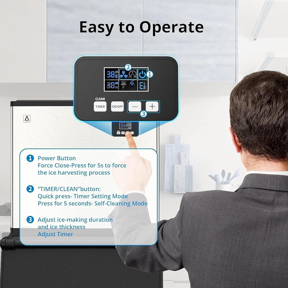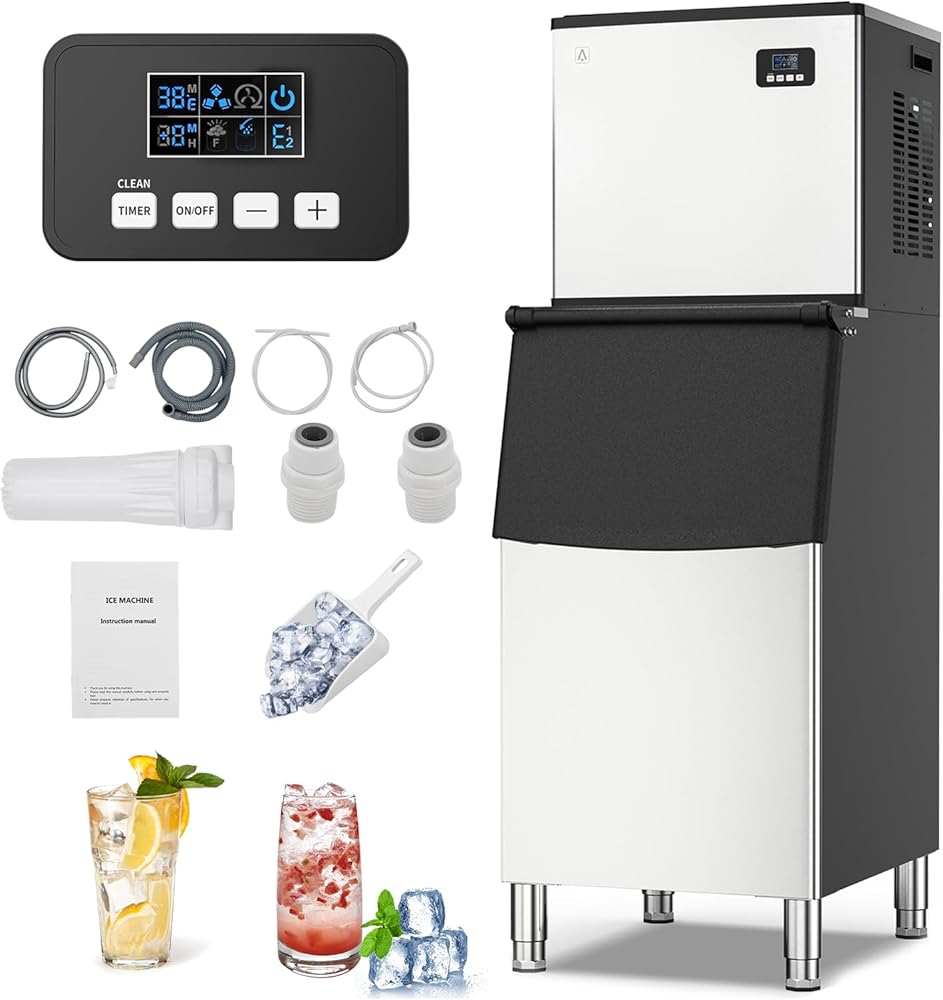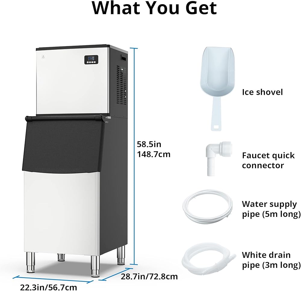 【سهلة التركيب والاستخدام】صانعة الثلج الكبيرة قائمة بذاتها وتأتي مع عبوتين: آلة صنع الثلج وصندوق الثلج. يتم تضمين مغرفة ثلج كبيرة وأنابيب لمدخل ومخرج المياه وأدوات أخرى. ما عليك سوى تجميع صانعة الثلج وصندوق الثلج معًا، ثم توصيلهما بالماء والضغط على بضعة أزرار، وسيبدأ صنع الثلج.