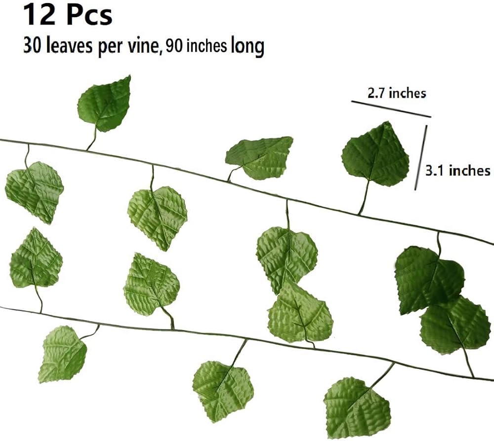 12 Pcs Artificial Grape Leaves Vines