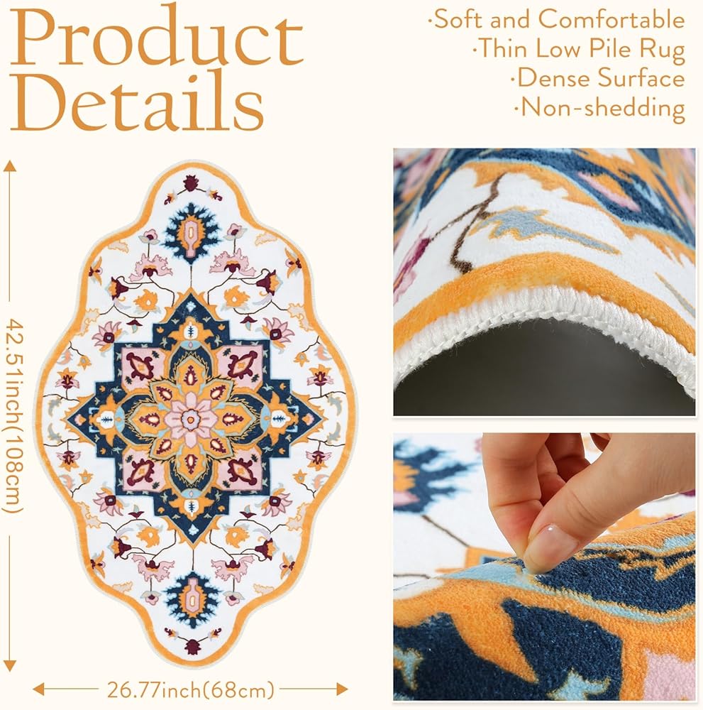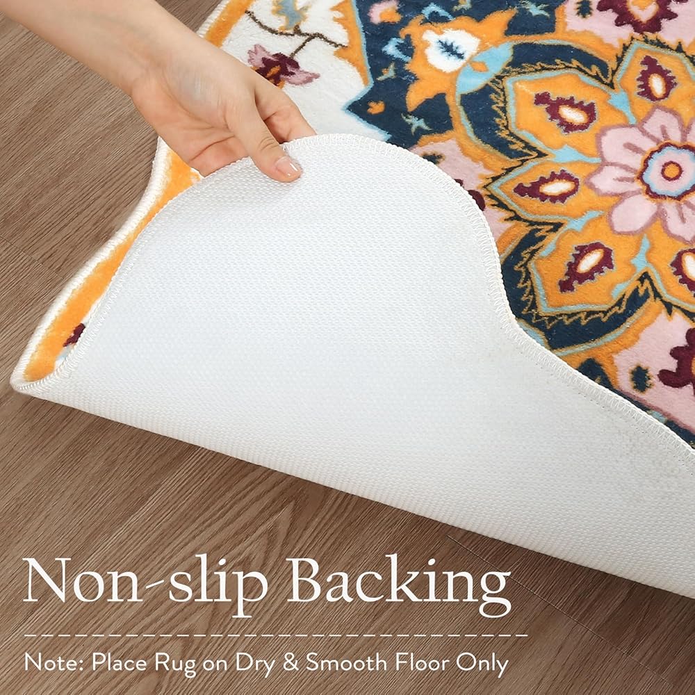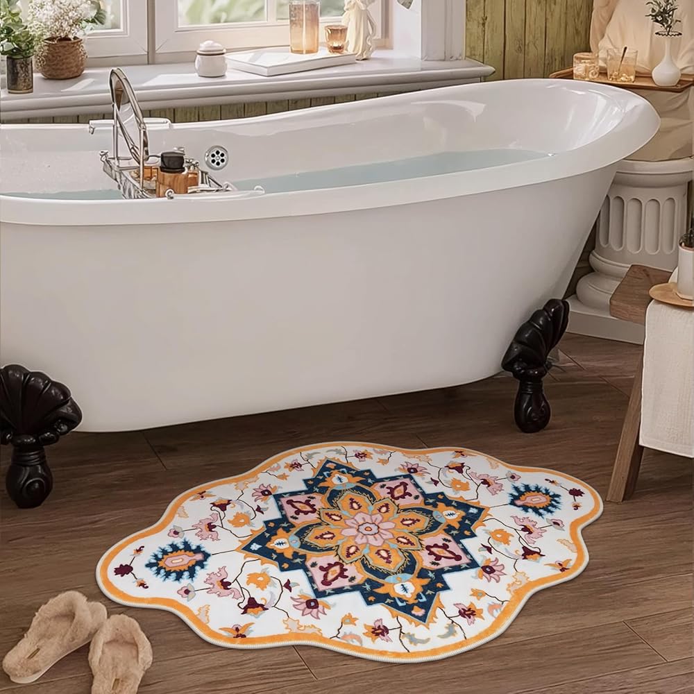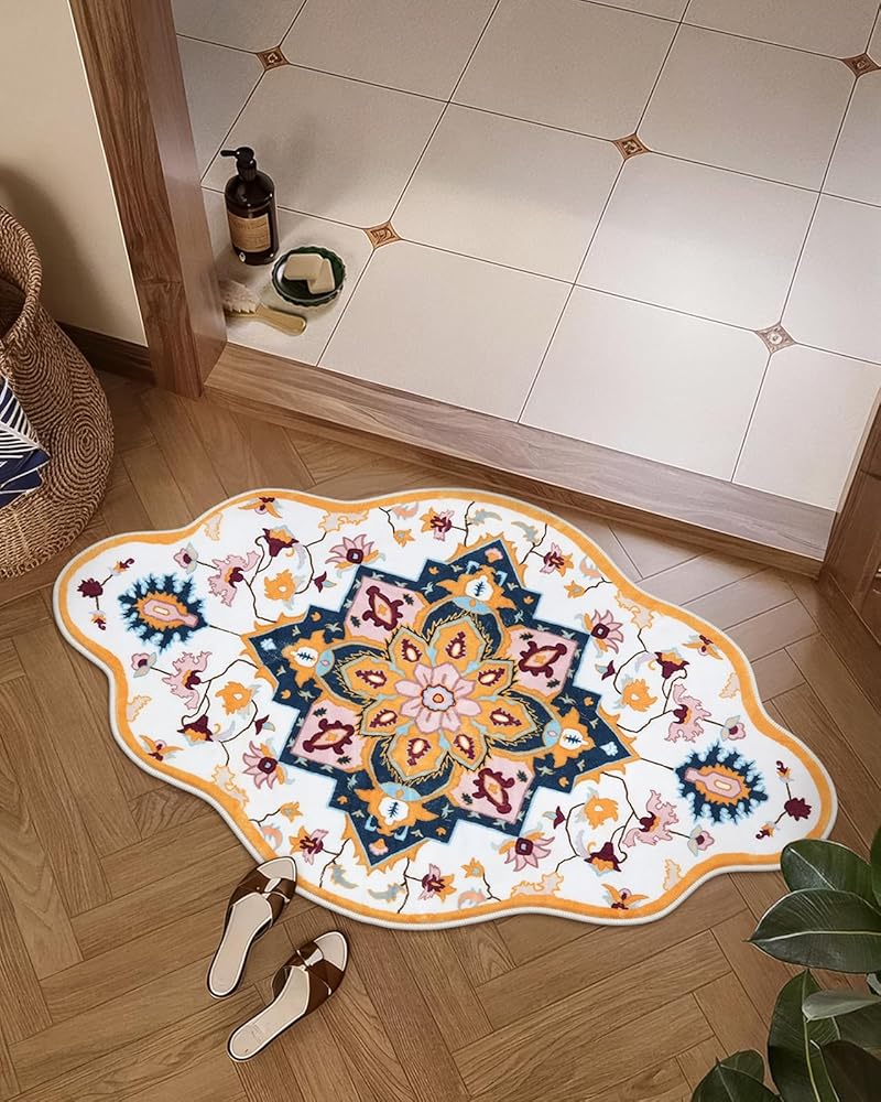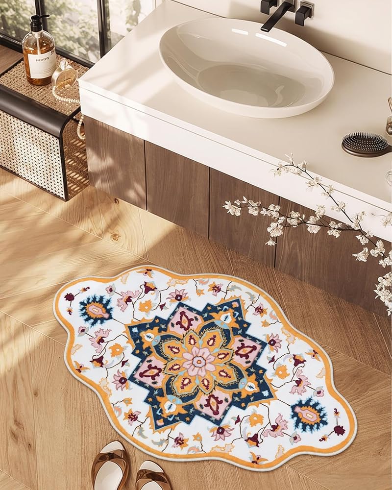 Seavish سجاد الحمام قابل للغسل بوهو حمام حصيرة لحوض عدم الانزلاق كبير أصفر الأزهار خمر سجاد الحمام لينة المخملية الشرقية الحمام الكلمة حصيرة ديكور المنزل القبلية لبالوعة المطبخ ممسحة دخول