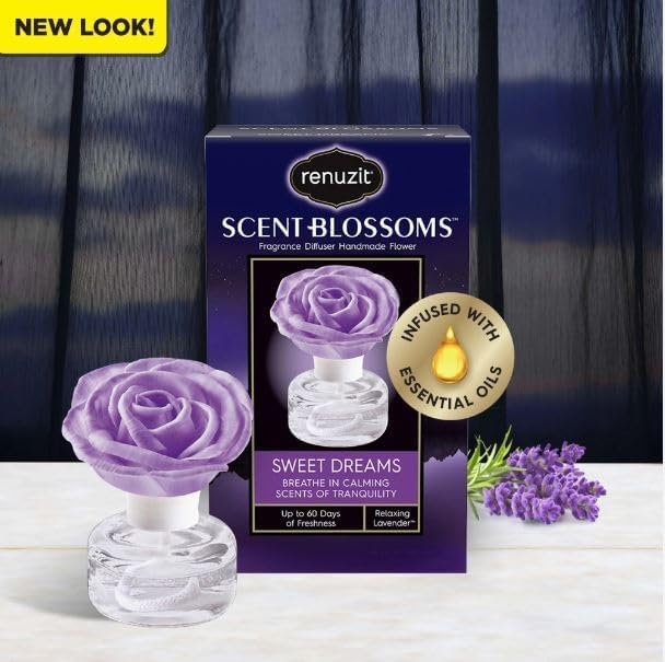 QUALITY: Scent Blossoms flowers are uniquely crafted by hand. Each scent is infused with essential oils; Provides up to 60 days of freshness. Enjoy the comforting and soothing scent of Sweet Dreams with the Renuzit Scent Blossoms Fragrance Diffuser. Let the calming aroma create a tranquil atmosphere in your home.