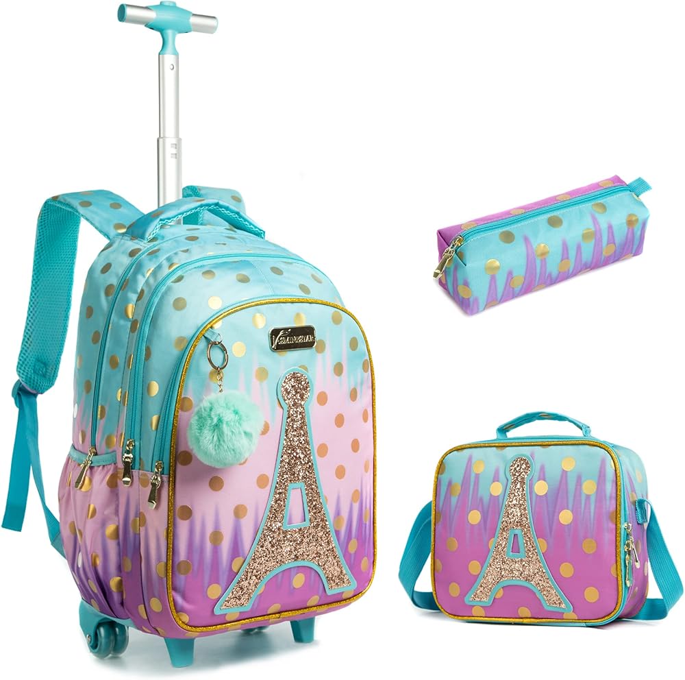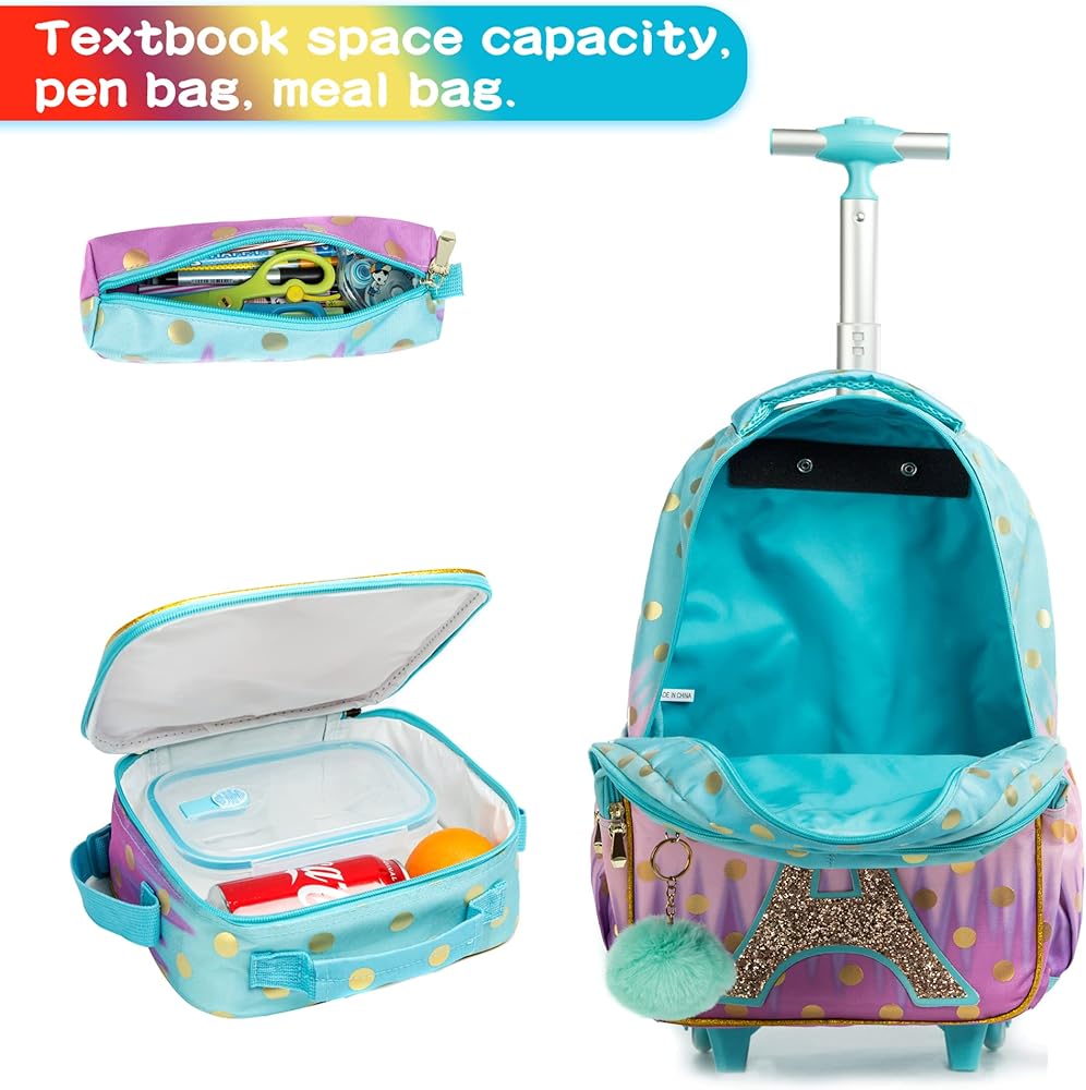 مجموعة حقيبة ظهر أنيقة دوارة: حقيبة ظهر دوارة واحدة، وحقيبة غداء واحدة، وحقيبة أقلام واحدة