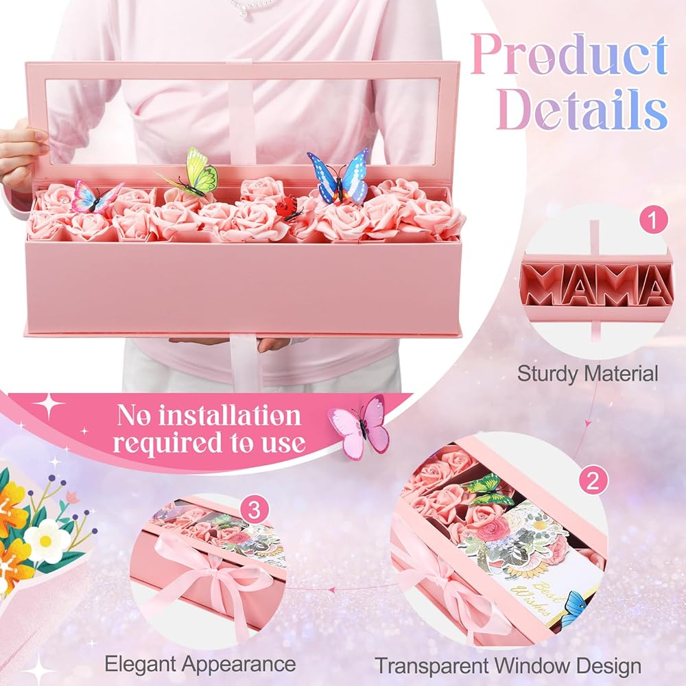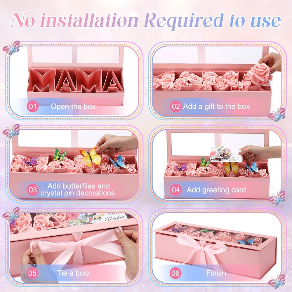 The attractive mom letter design box adds elegance, and beauty to your gift. Combined with its perfect size, this feature makes the box strikingly beautiful and just the right choice for an unforgettable gift.