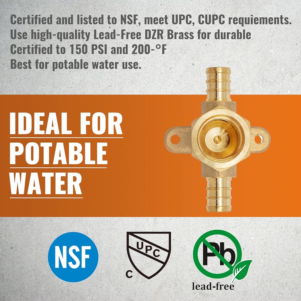 【 تتضمن العبوة: تي شيرت PEX 1/2 بوصة × PEX 1/2 بوصة × 1/2 بوصة أنثى NPT (4 عبوات)