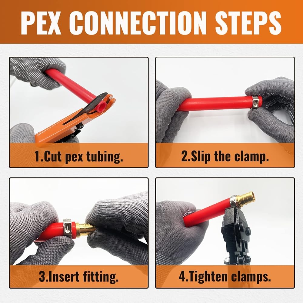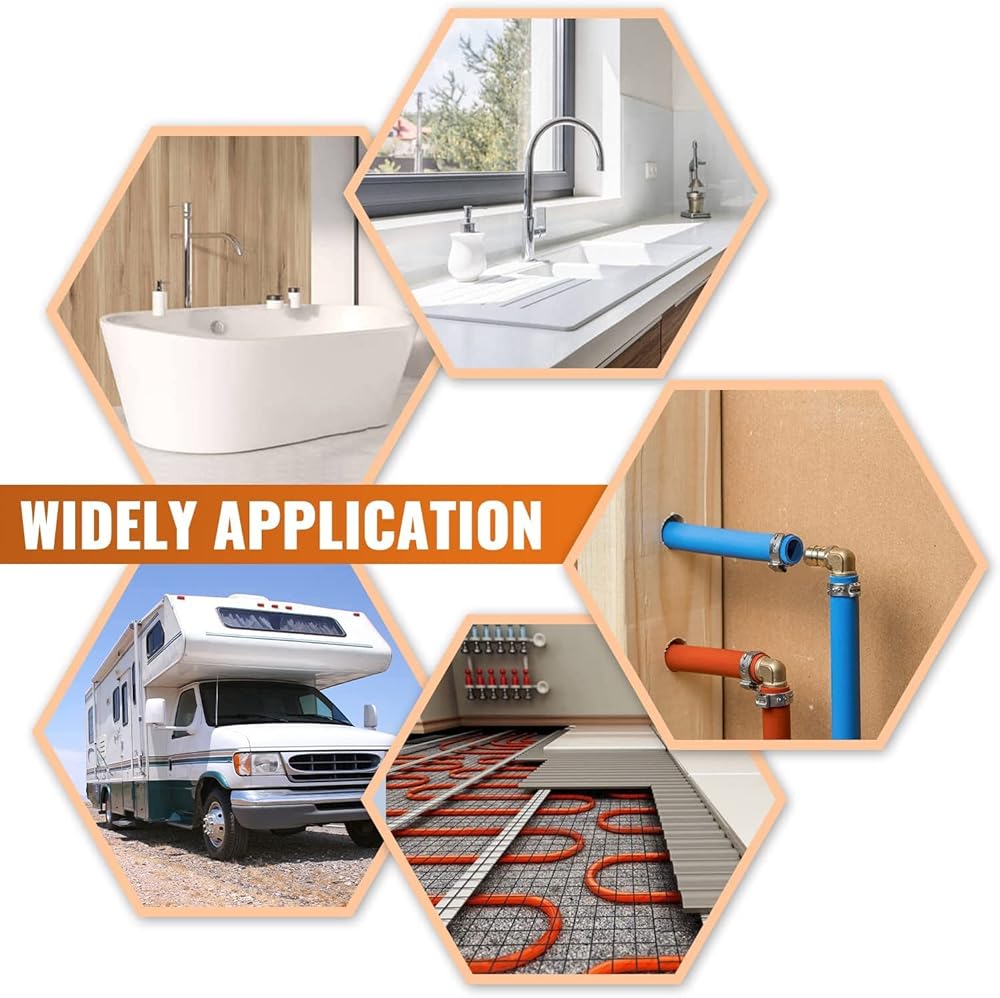 【المنتجات المتوافقة】: تستخدم تركيبات Pex مقاس 1/2 بوصة مع حلقات المشبك المصنوعة من الفولاذ المقاوم للصدأ أو حلقات النحاس المجعدة من PEX. (حلقات المشبك غير متضمنة في هذه المجموعة.)
