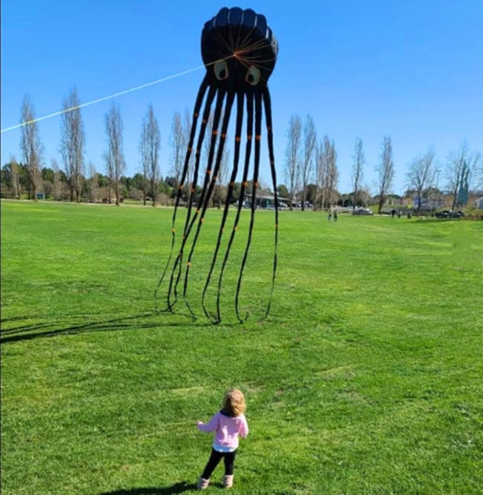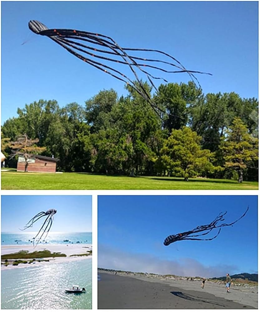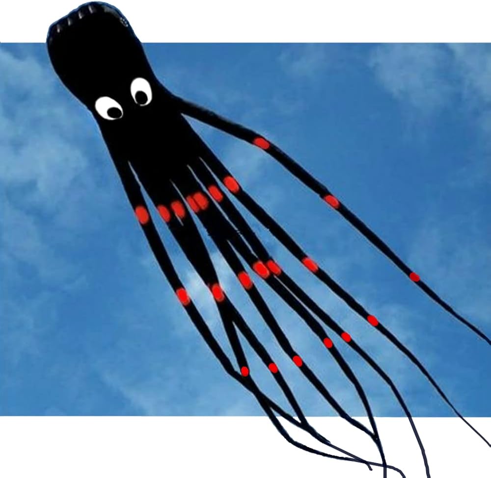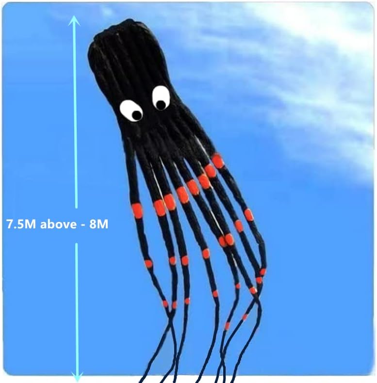 • Want Your Friends To Pick You Out From The Crowd or on the Beach? With this 3D huge ~ 8 meters long octopus kite ( It's about the length of two average cars! ). The giant squid kite in flight resembles an alien invading the Earth! Eye-catching, stunning, and sure to be the center of attention. Dimensions: ~ 8 meters long, Color: Black, Material: lightweight ripstop nylon. Package included: original kite bag, braided polyester line on a handle, ready to fly!