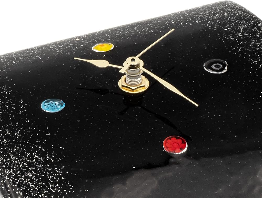 ?ملاحظات فنية: الساعة مصنوعة من زجاج المورانو بواسطة Master Glassmakers باستخدام تقنية دمج الزجاج. تتميز بآلية كوارتز دقيقة صامتة مصنوعة بالكامل في إيطاليا مع مراقبة الجودة AQL2 وتتوافق مع توجيهات CE وROHS. في النسخة الجدارية، تتميز الآلية بخطافين ABS مناسبين للتعليق العمودي. يتم تشغيل الآلية بواسطة بطارية قلم AA 1.5 فولت، غير متضمنة.