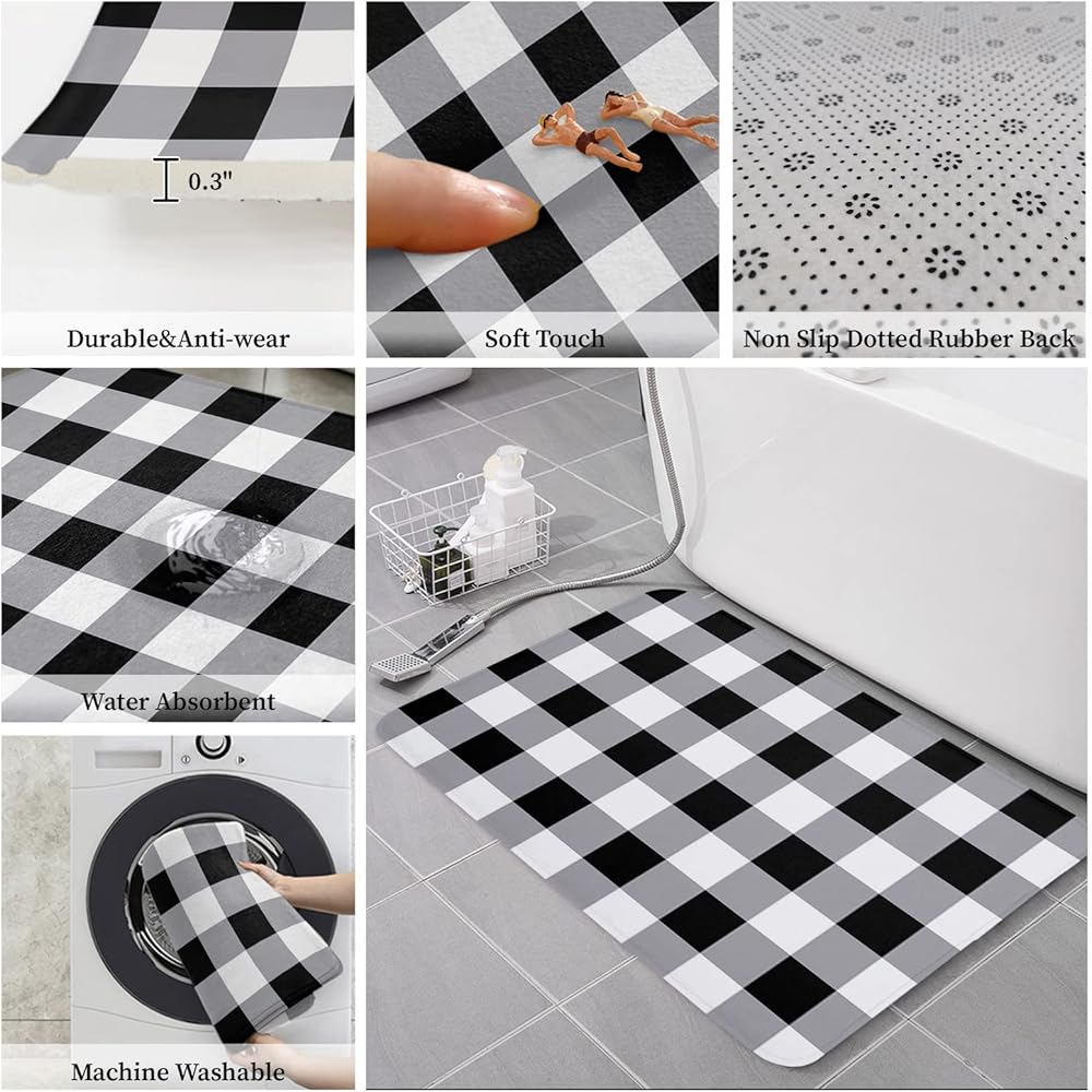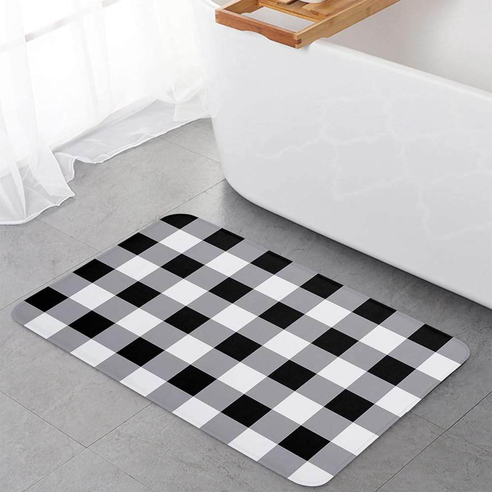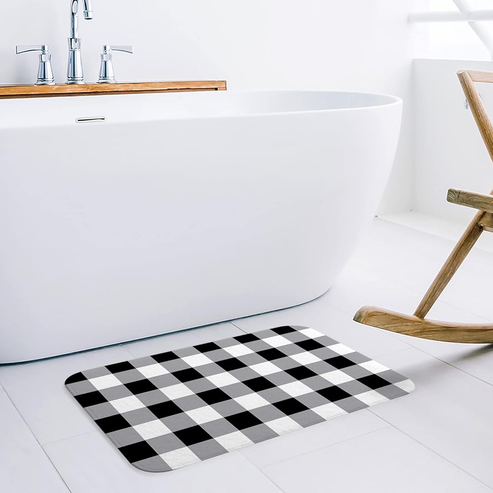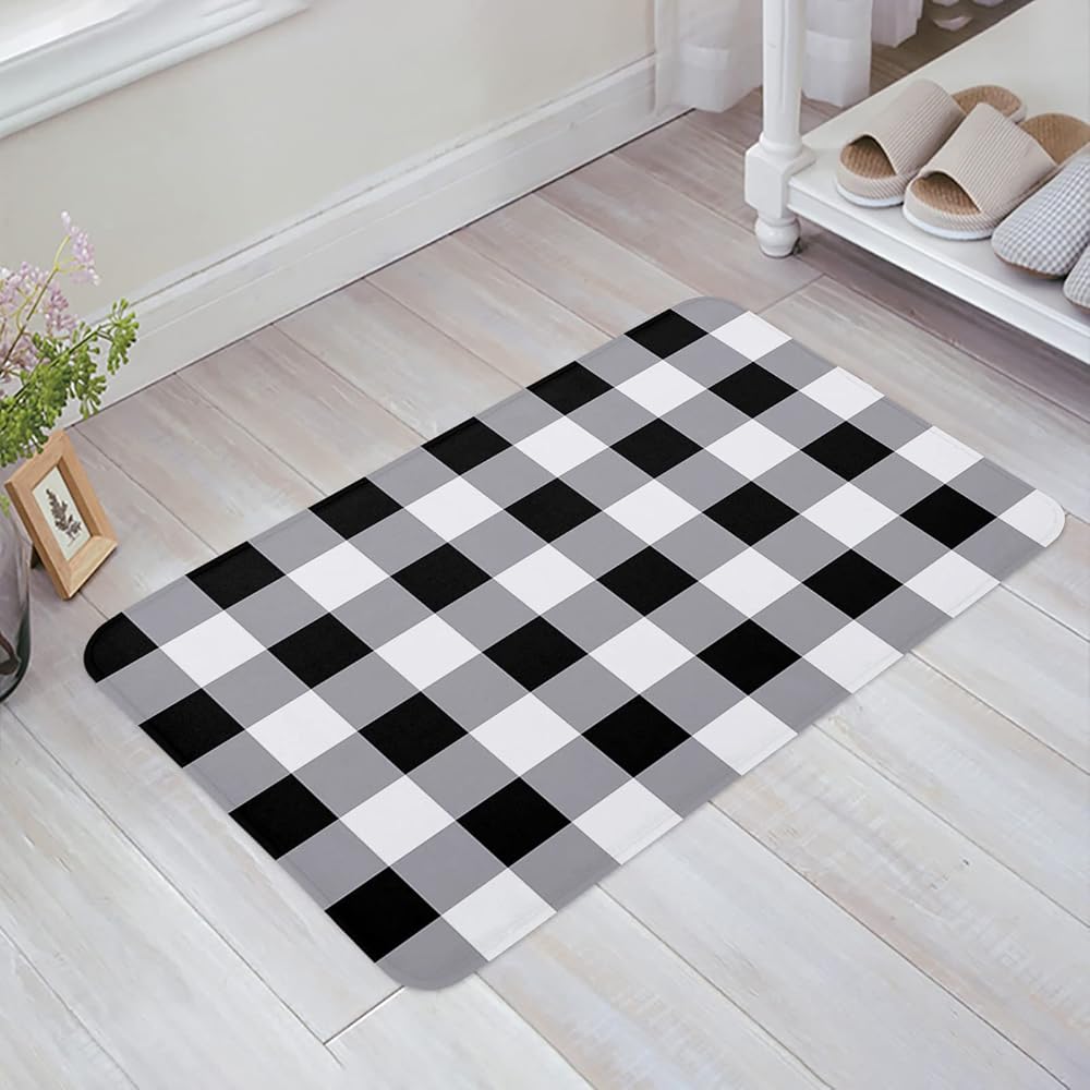 أسود وأبيض الجاموس منقوشة سجادة باب، أبيض وأسود سجادة باب، سجاد الحمام مومري رغوة حمام حصيرة، متقلب سجادة باب أمامي لغرفة النوم ديكور غرفة المعيشة، ماتس الكلمة ماصة 18x30in ترحيب الحصير