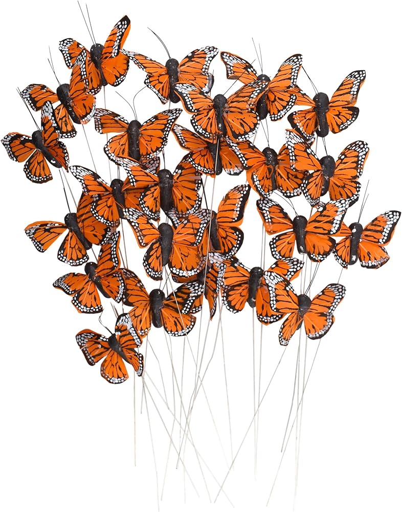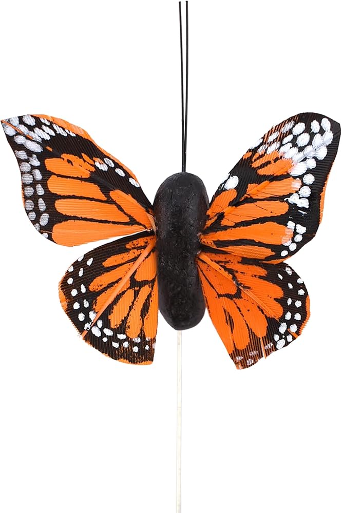 Each mini monarch butterfly pick features a lifelike butterfly with intricate details and vibrant colors, adding a touch of whimsy and elegance to your floral designs.