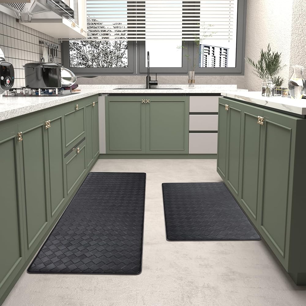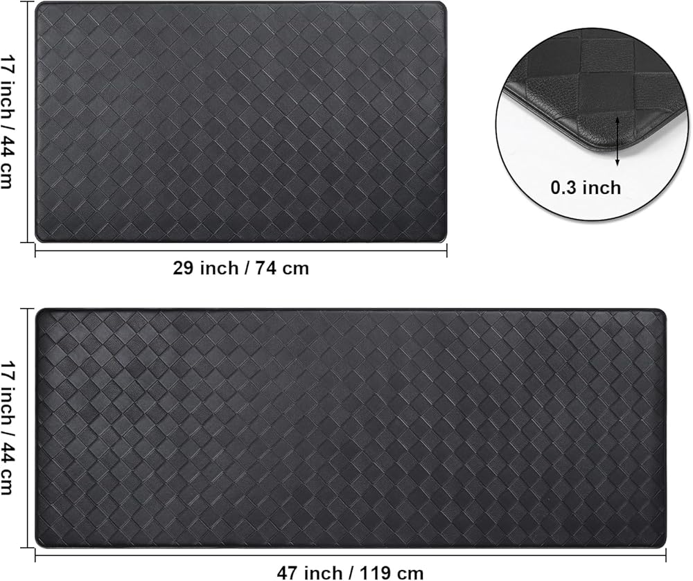 حجم مجموعة سجادة المطبخ: سوف تحصل على 2 سجادة أرضية مطبخ سوداء، مقاسها 29 بوصة × 17 بوصة + 47 بوصة × 17 بوصة (74 × 44 سم + 119 × 44 سم). يمكن للأحجام المختلفة لسجادات التعب الدائمة أن تلبي احتياجات الاستخدام المختلفة الخاصة بك.