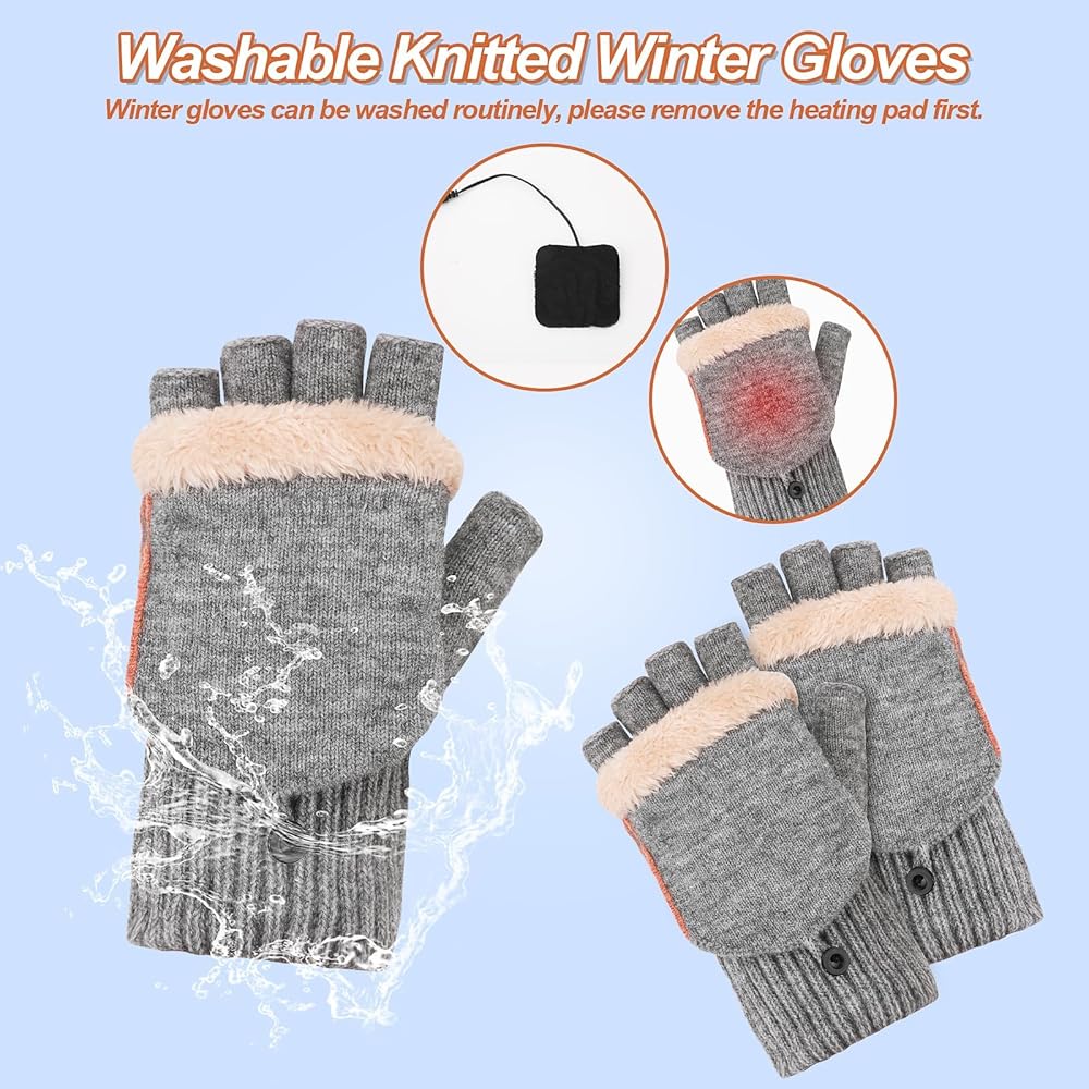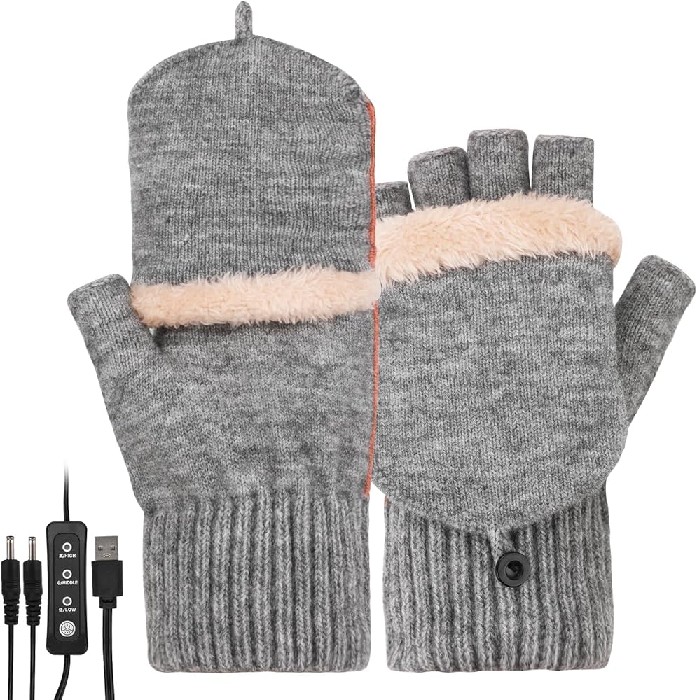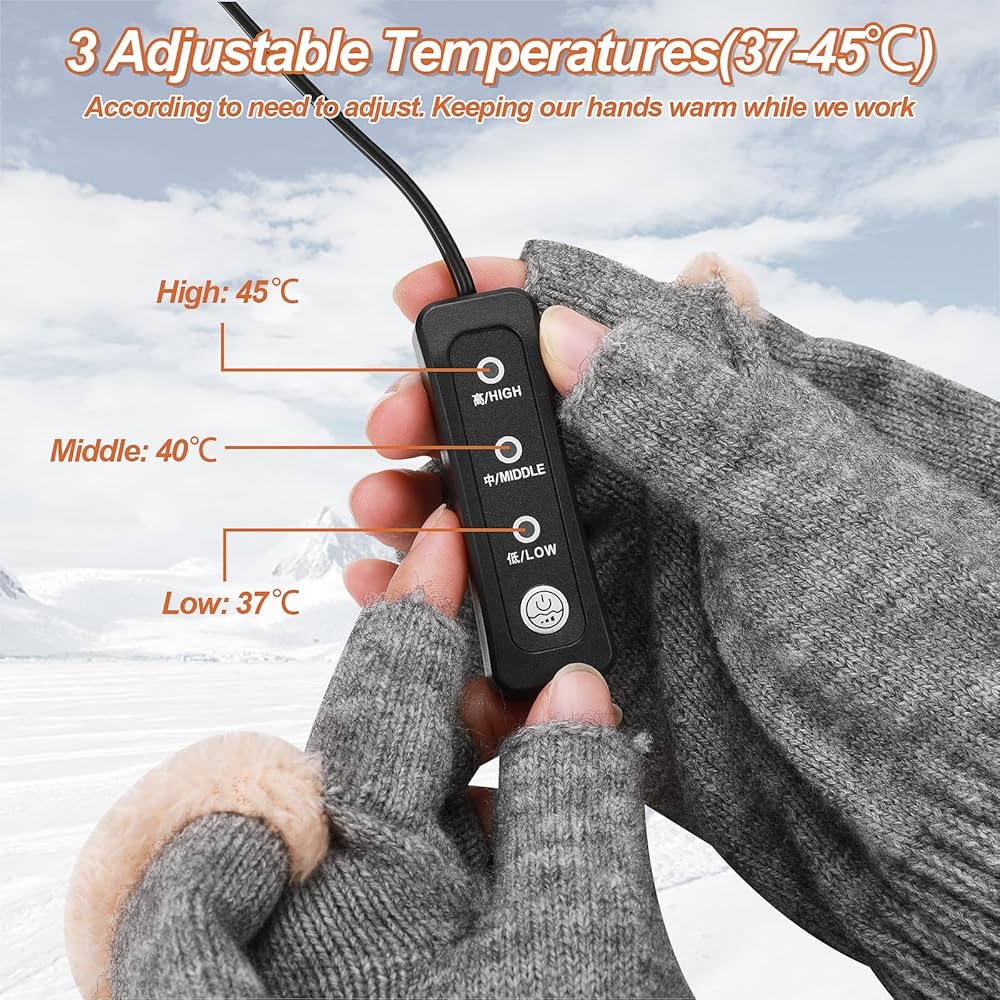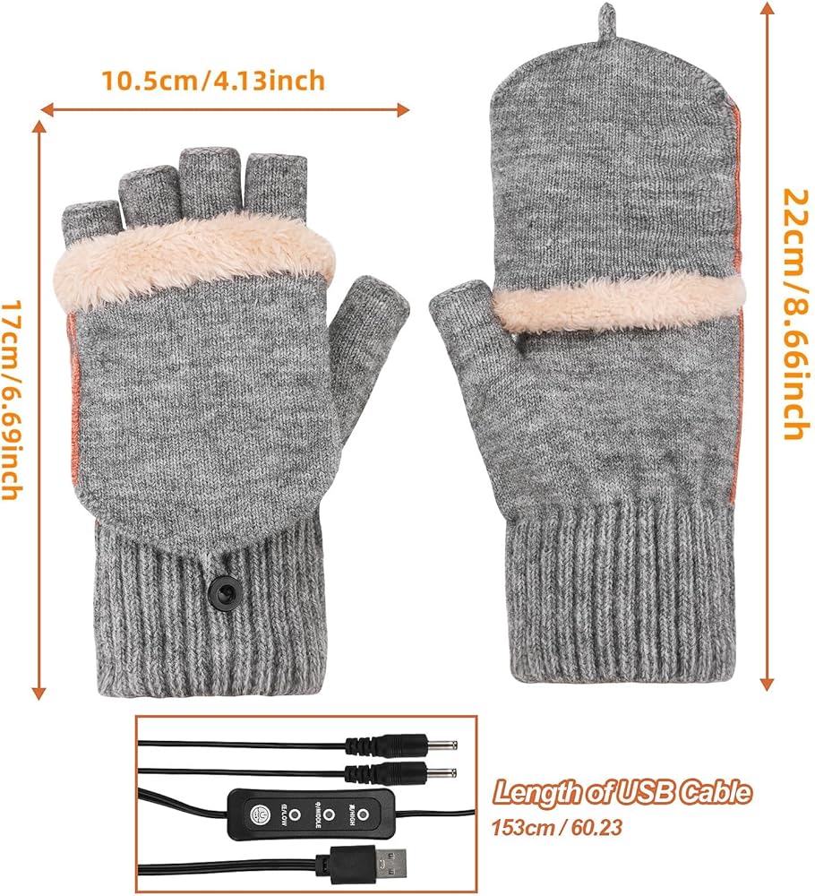 قفازات USB للتدفئة للرجال والنساء، قفازات شتوية دافئة من KKUYT، 3 مستويات للتدفئة، قفازات كمبيوتر محمول دافئة لليدين في الشتاء، قفازات محبوكة للتدفئة كاملة ونصف بدون أصابع، قفازات الكتابة، أفضل هدية شتوية