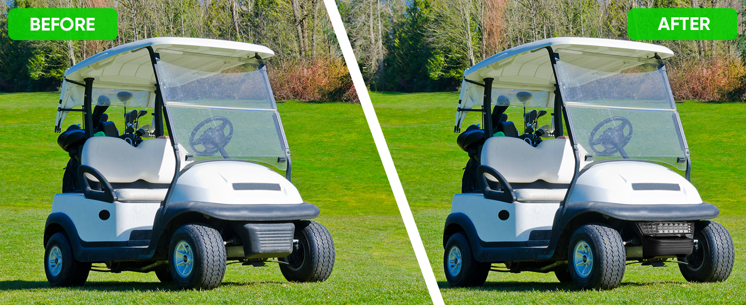 【تتضمن العبوة】- تحتوي العبوة على مصباح أمامي LED واحد مع ممتص للصدمات. يرجى ملاحظة أن حزام عربة الجولف غير متضمن في المجموعة.