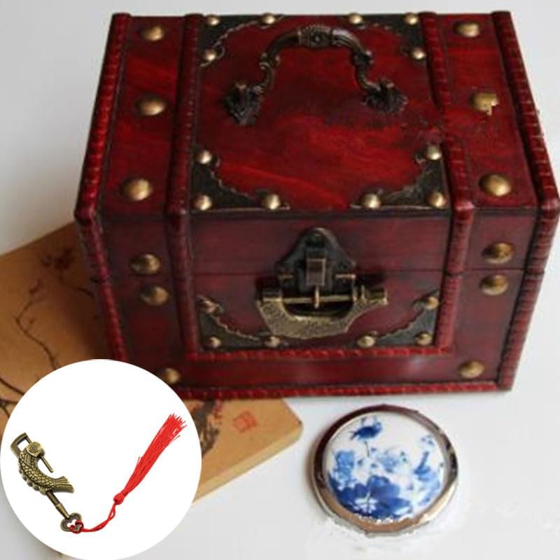 Vintage antique wooden box lock appearance design is exquisite, antique style, small and exquisite.