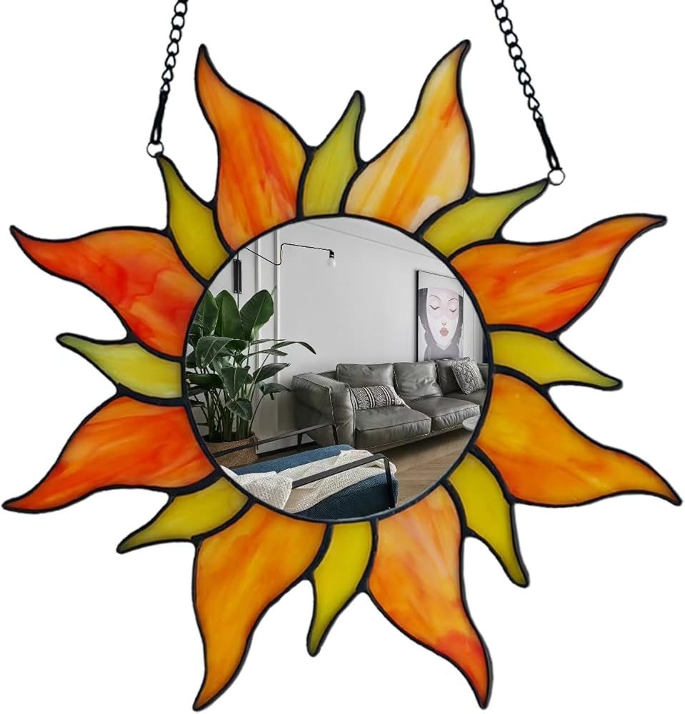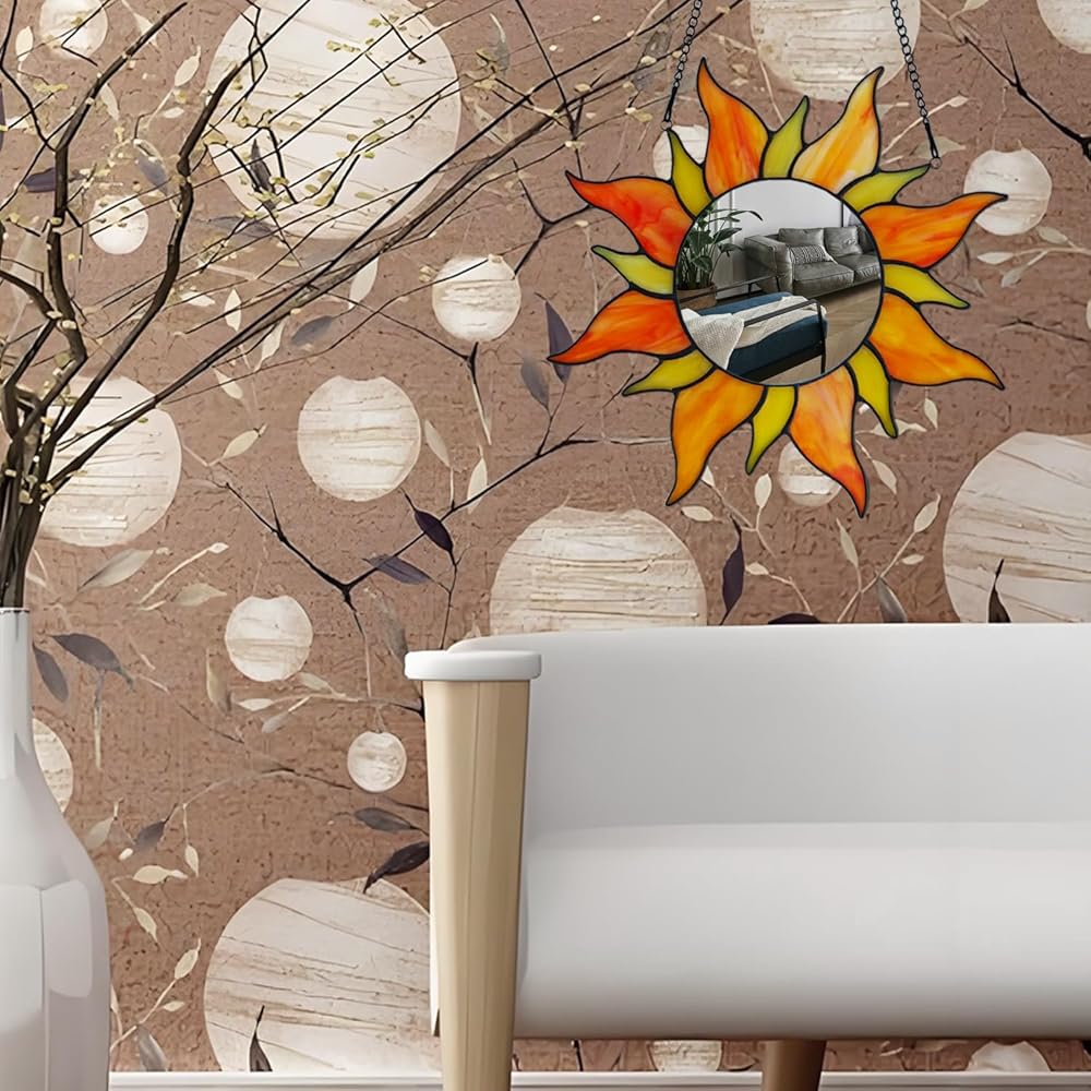 【technology】This artistic round mirror adopts advanced glass and exquisite silver plating technology, with clear images, realistic and smooth mirror surface without deformation. It combines beautifully with handmade stained glass, integrating art and life.
