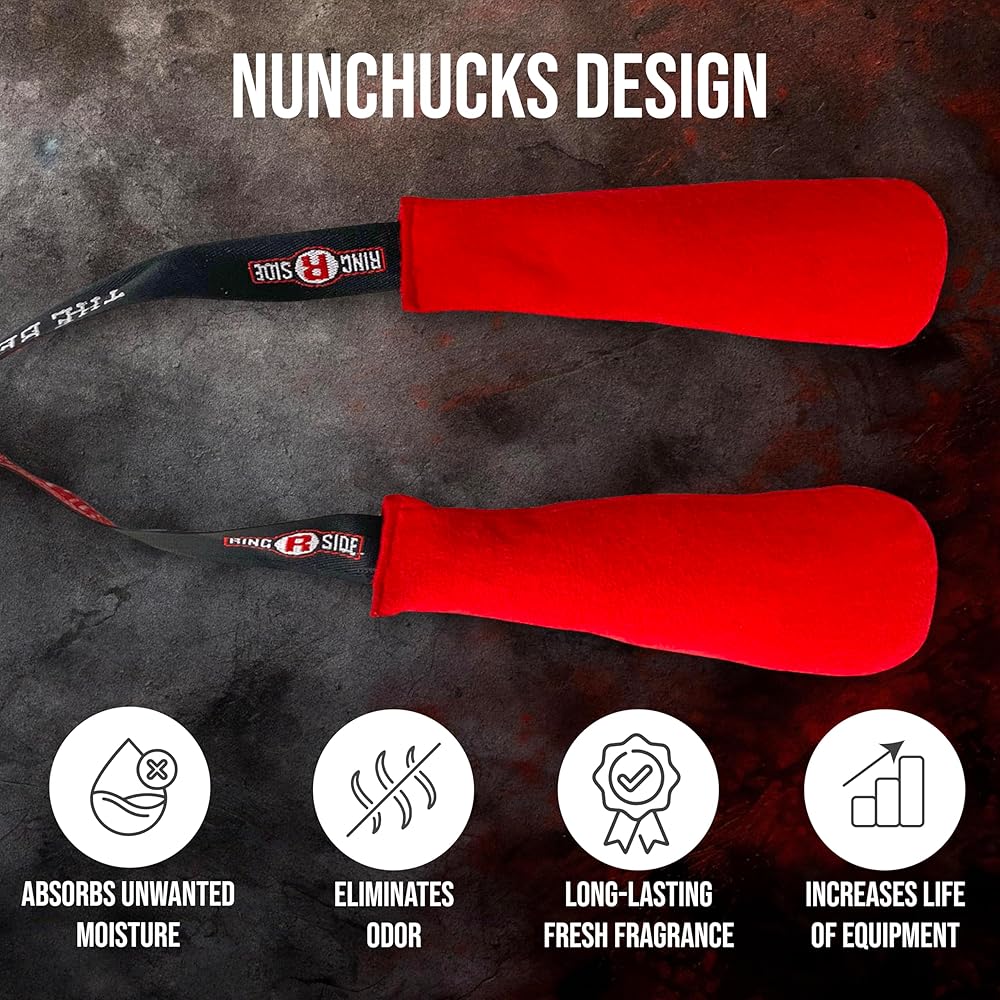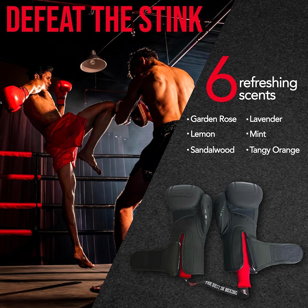 Banish odors and keep your sports gear smelling fresh with the Ringside Equipment Deodorizer. The moisture-absorbing fibers effectively combat odors, ensuring cleanliness. Featuring a nunchucks design, the odor eliminator inserts keep gloves together, prevent breakdown from moisture buildup, and prolong equipment life, while leaving behind a long-lasting freshness. Suitable for various sports, including boxing, MMA, tennis, and more, it freshens gloves, shoes, gym bags, and other gear. Available in six delightful scents—Garden Rose, Lavender, Lemon, Mint, Sandalwood, and Tangy Orange—this shoe deodorizer is your solution to eliminating funky odors.