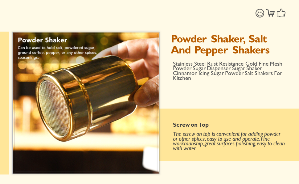 اختيار رائع ---- إذا كنت ترغب في صنع الحلوى أو المشروبات بنفسك، فلا تتردد في شراء غبار شيكر السكر البودرة. سوف تكون هزازات الملح للمطبخ مساعدك الكبير. مساعد رائع للطهي في المطبخ، يعتبر شاكر التوابل الخيار الأمثل لمحبي الطبخ أو الطهاة المحترفين.