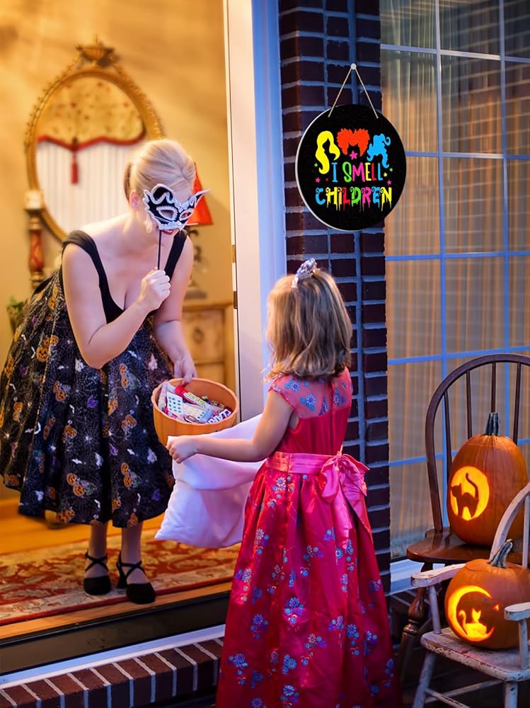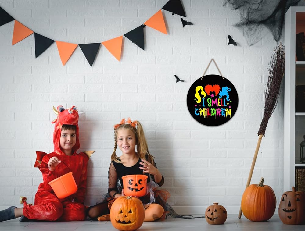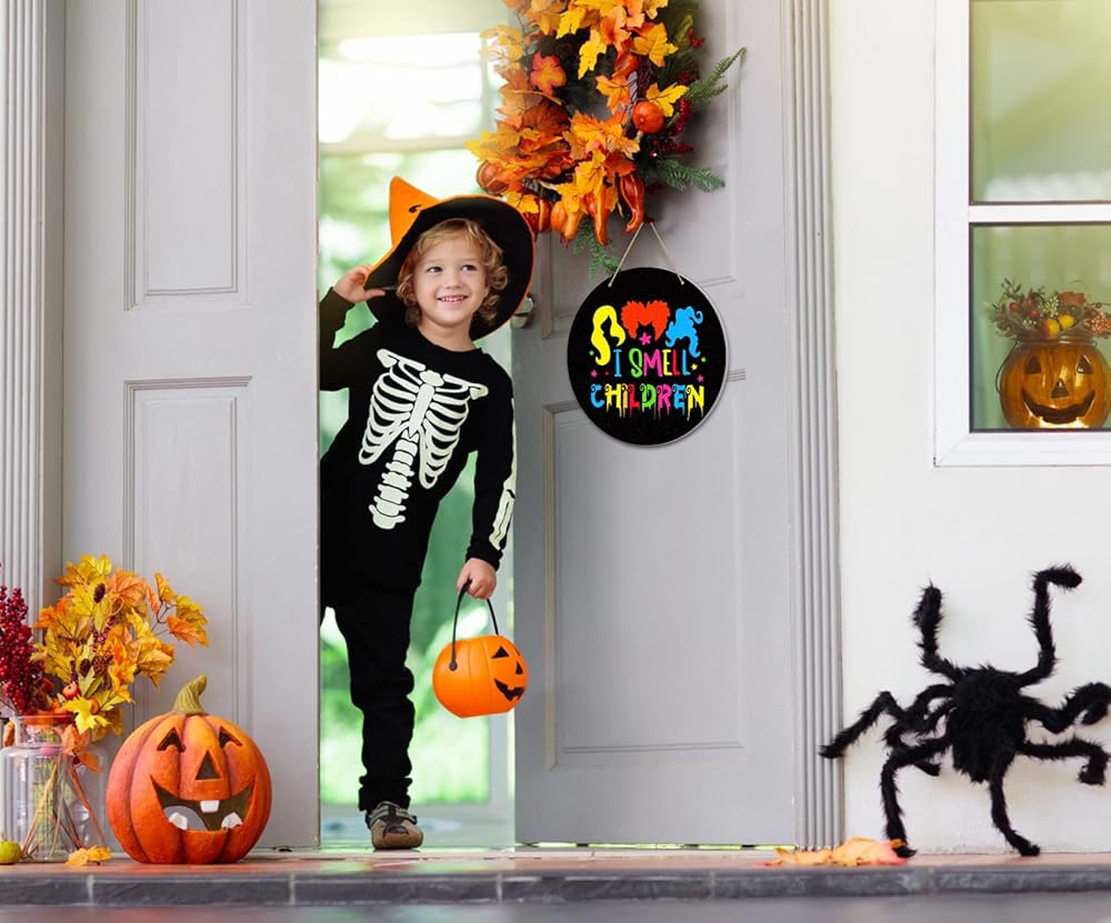 ديكور FaCraft Hocus Pocus I Smell للأطفال، لافتة باب للهالوين، لافتة معلقة للباب الأمامي