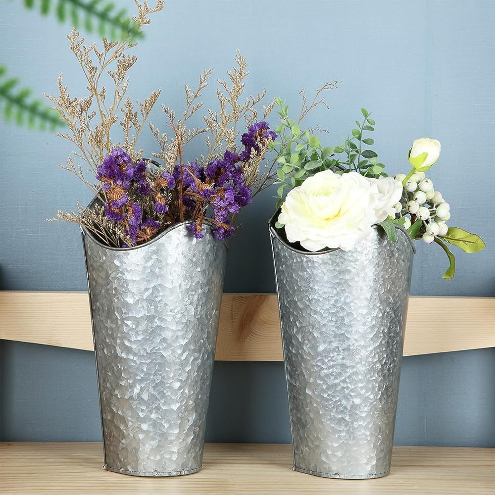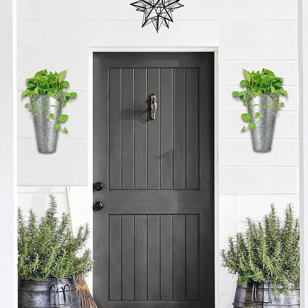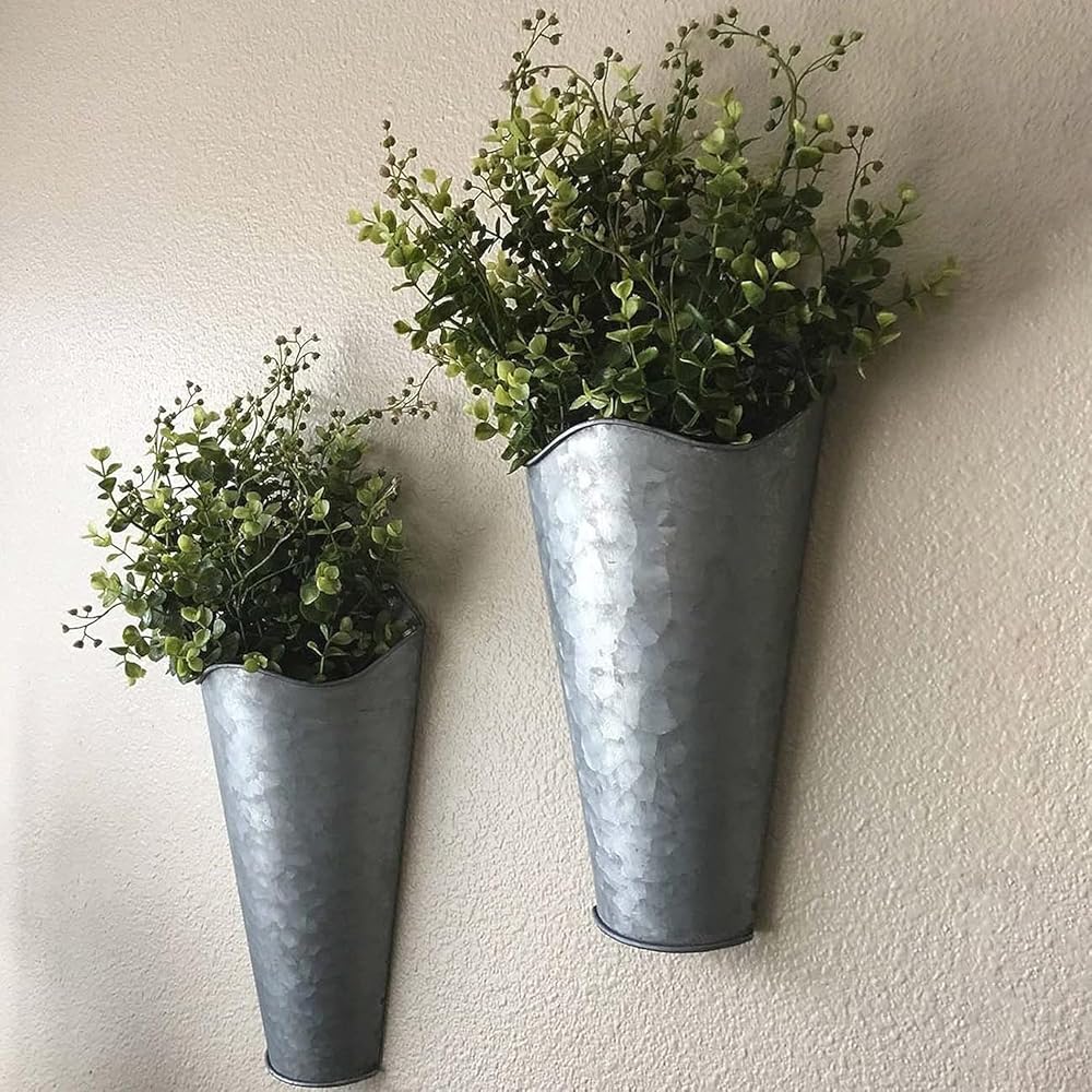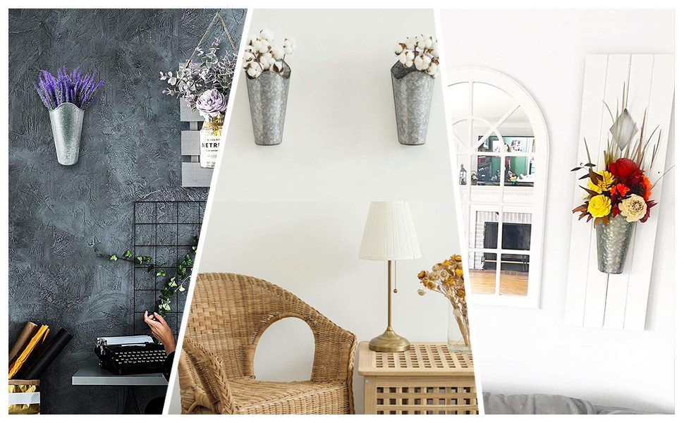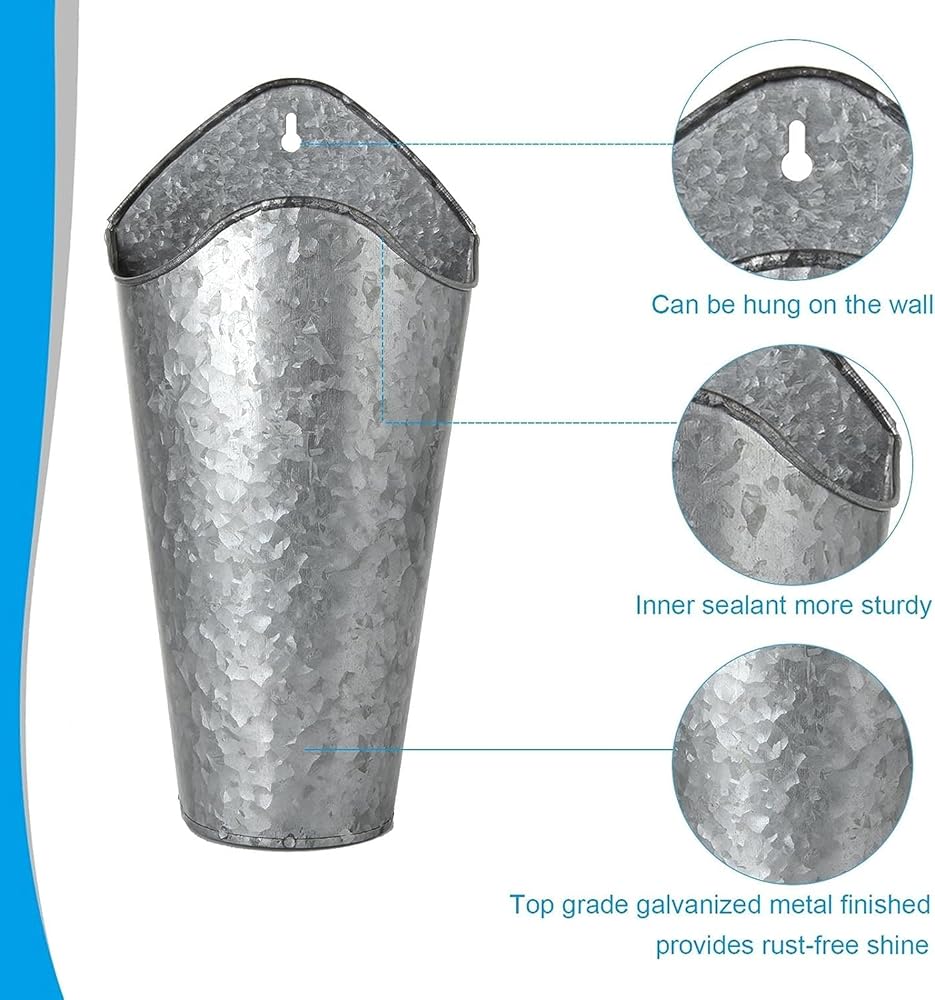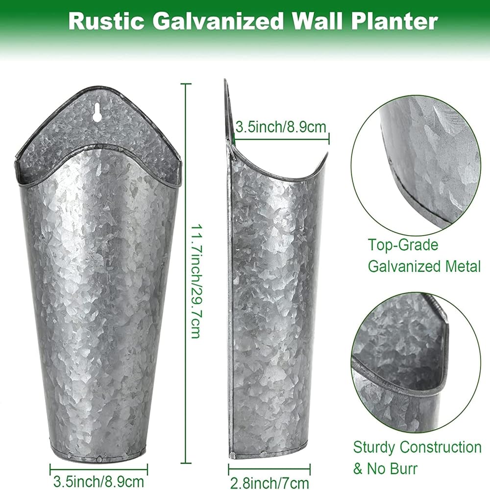 【مقاومة للتآكل】حاويات مزهرية حائط المزرعة مصنوعة من معدن عالي الجودة. صدأها: لمسة نهائية عتيقة مجانية لا تسمح للغبار بالبقاء عليها. مزهرية حائط من الصفيح المجلفن تضفي لمسة أنيقة على ديكور منزلك.